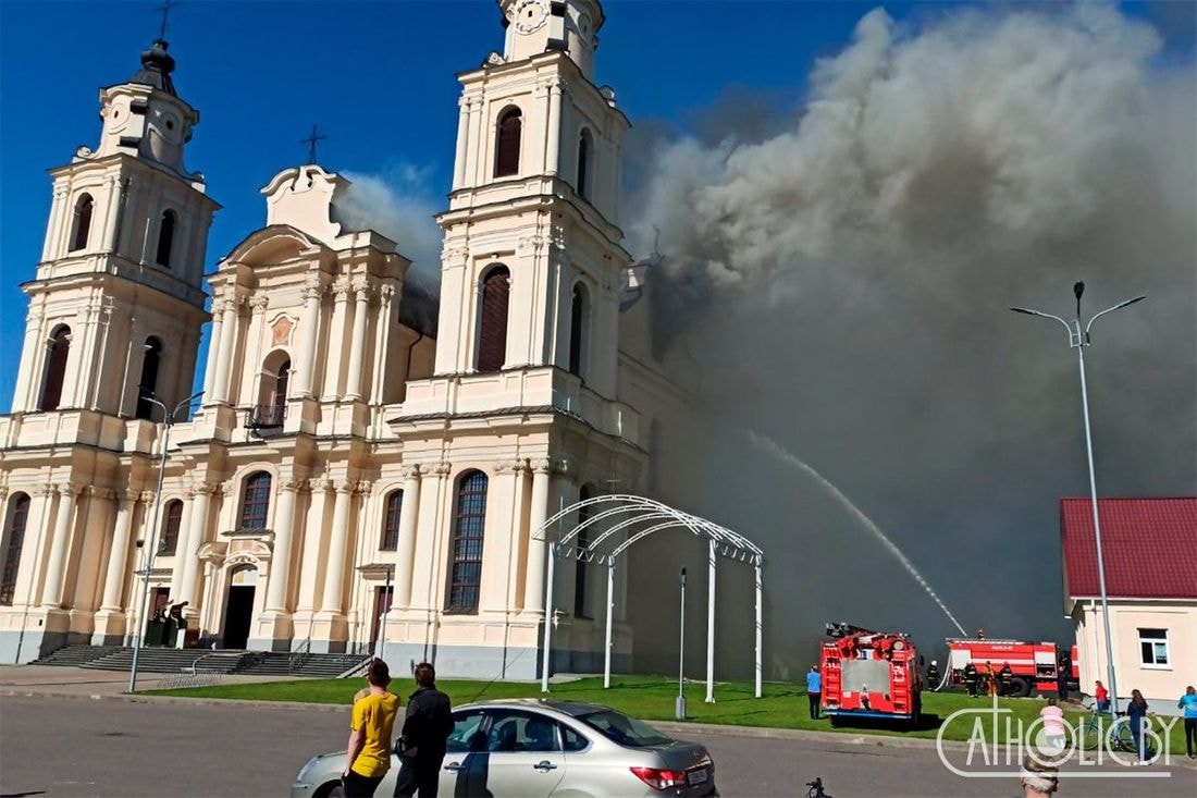 Сегодня утром в Национальном санктуарии Матери Божьей Будславской произошло возгорание. На место происшествия приехали пожарные, сообщает сайт catholic.by.