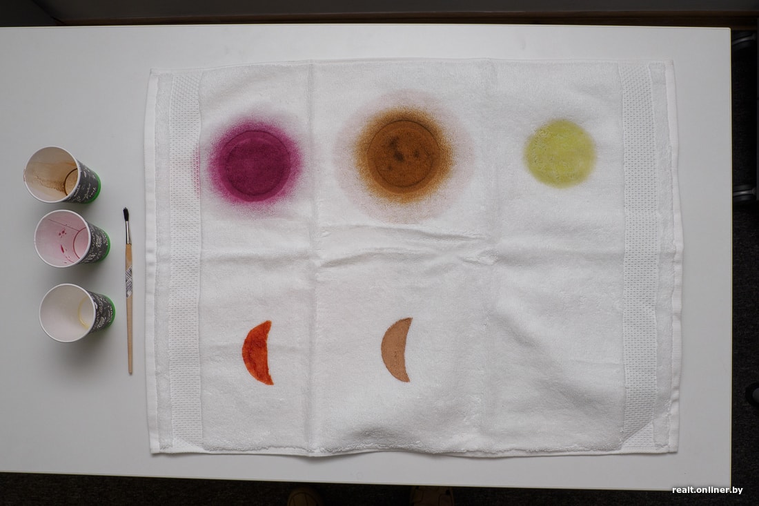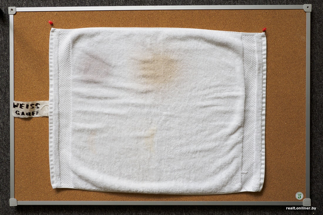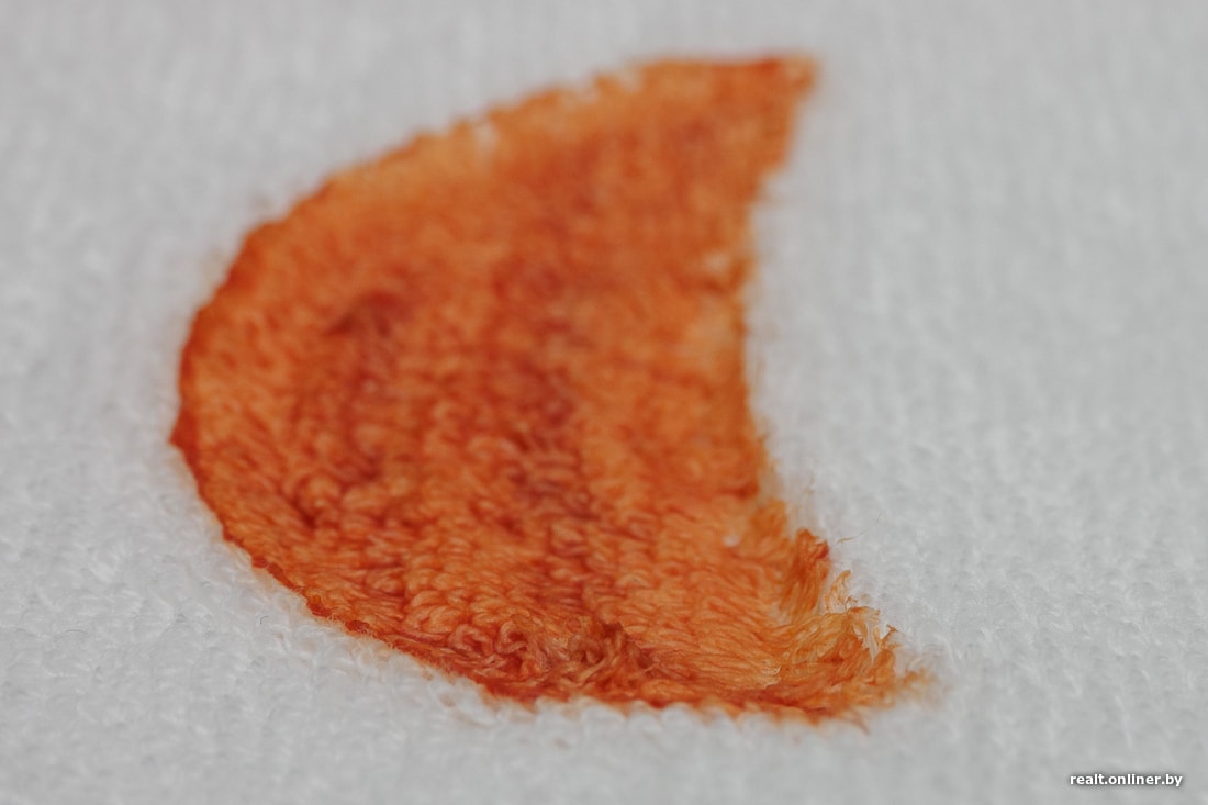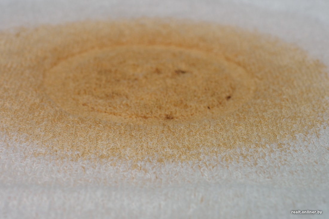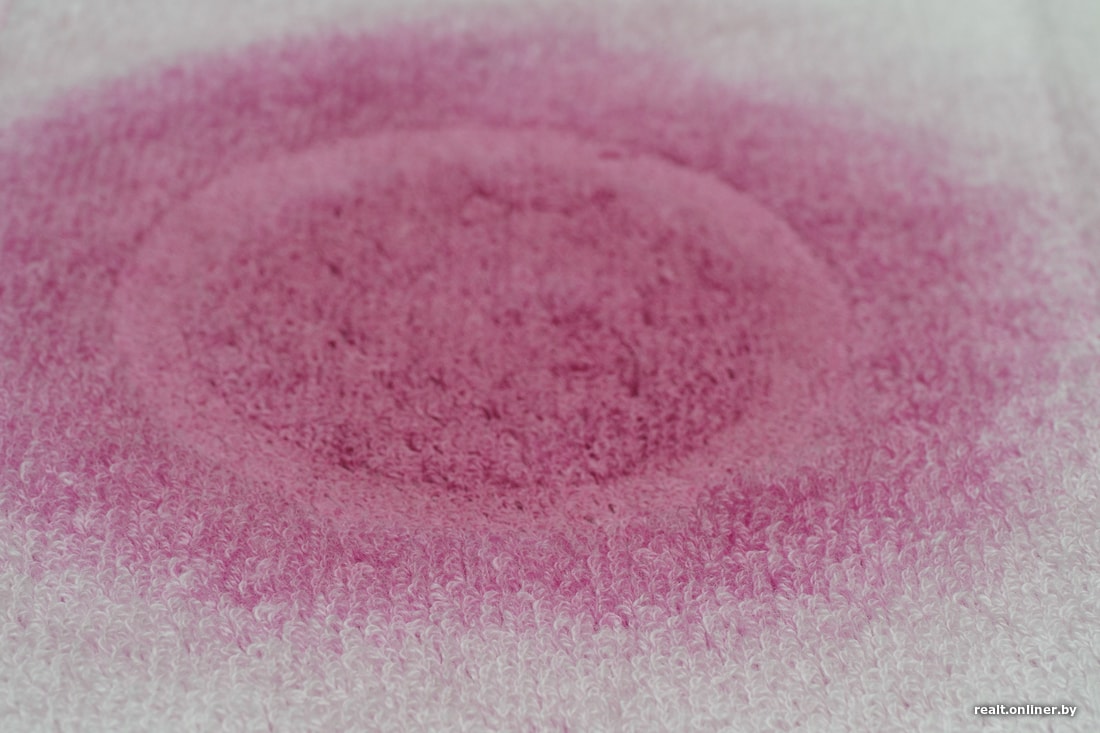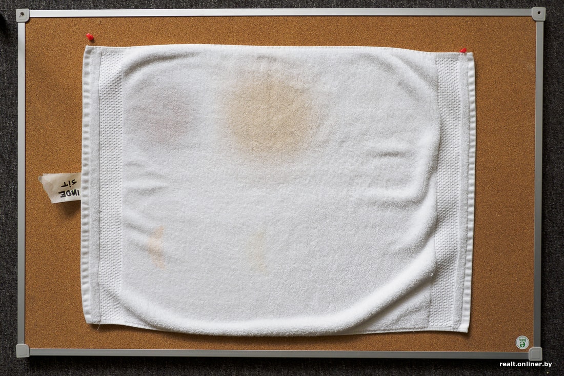 Жидкостей отмеряли по 25 мл, кетчупа и тональника набрали по 2 мл. Все это хорошенько разлили, втерли и оставили въедаться почти на сутки. Что мы сделали со второй партией полотенец, расскажем чуть позже.