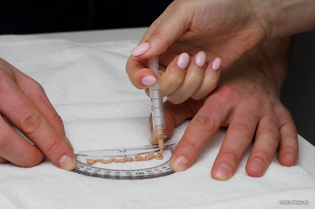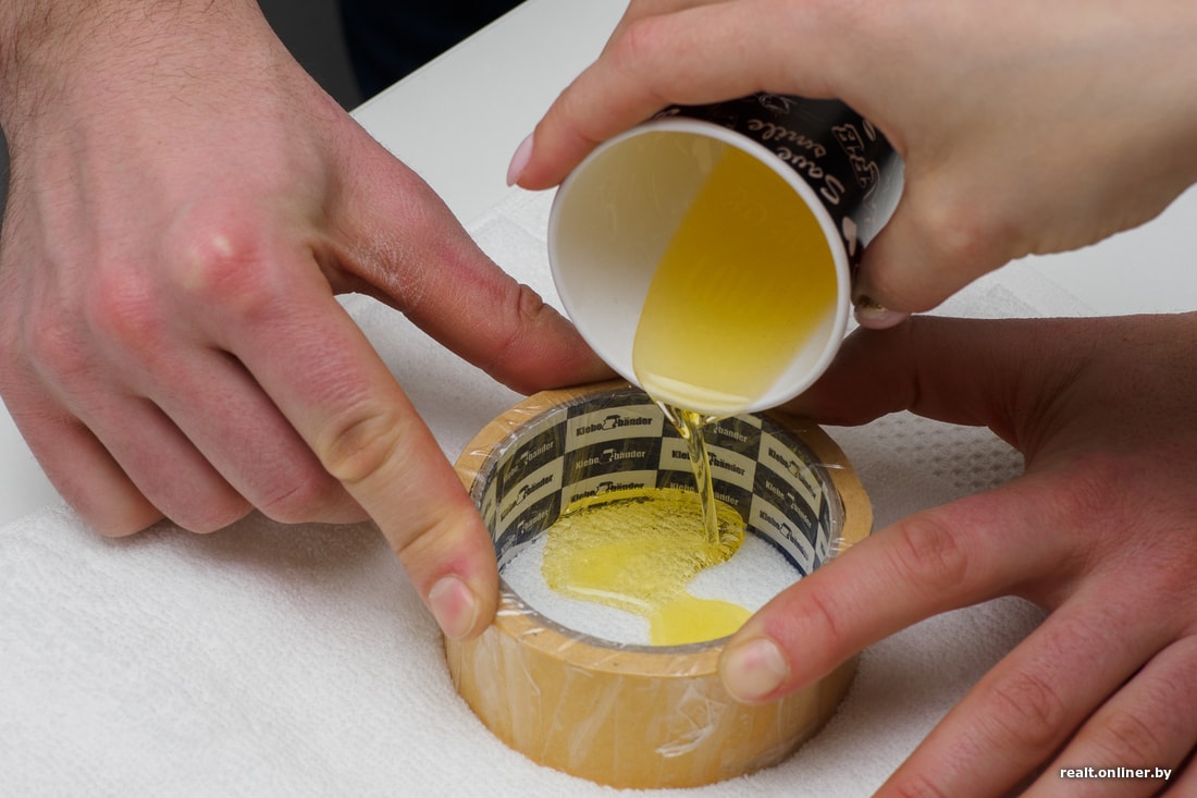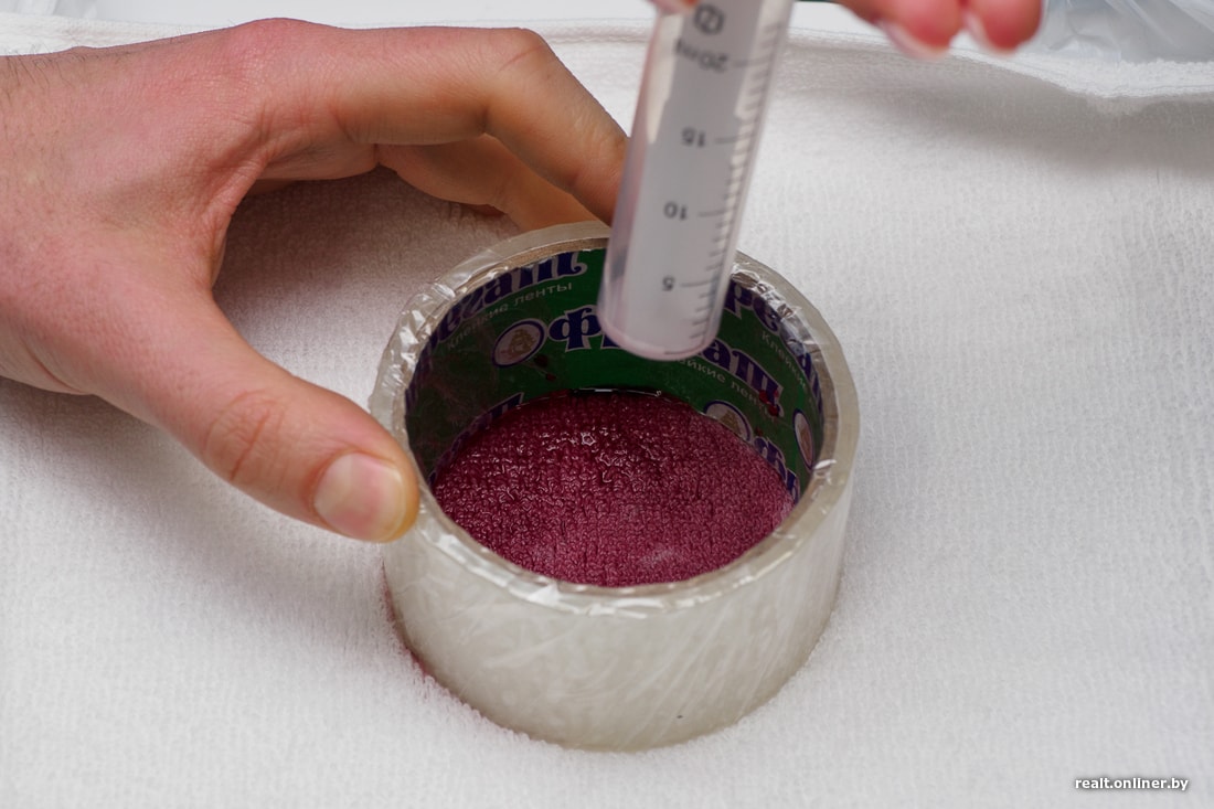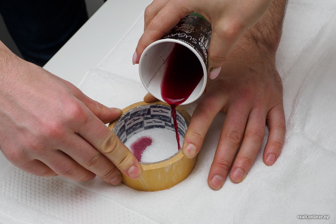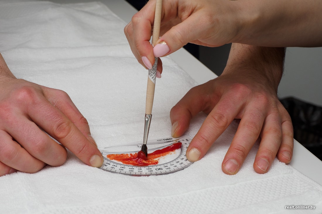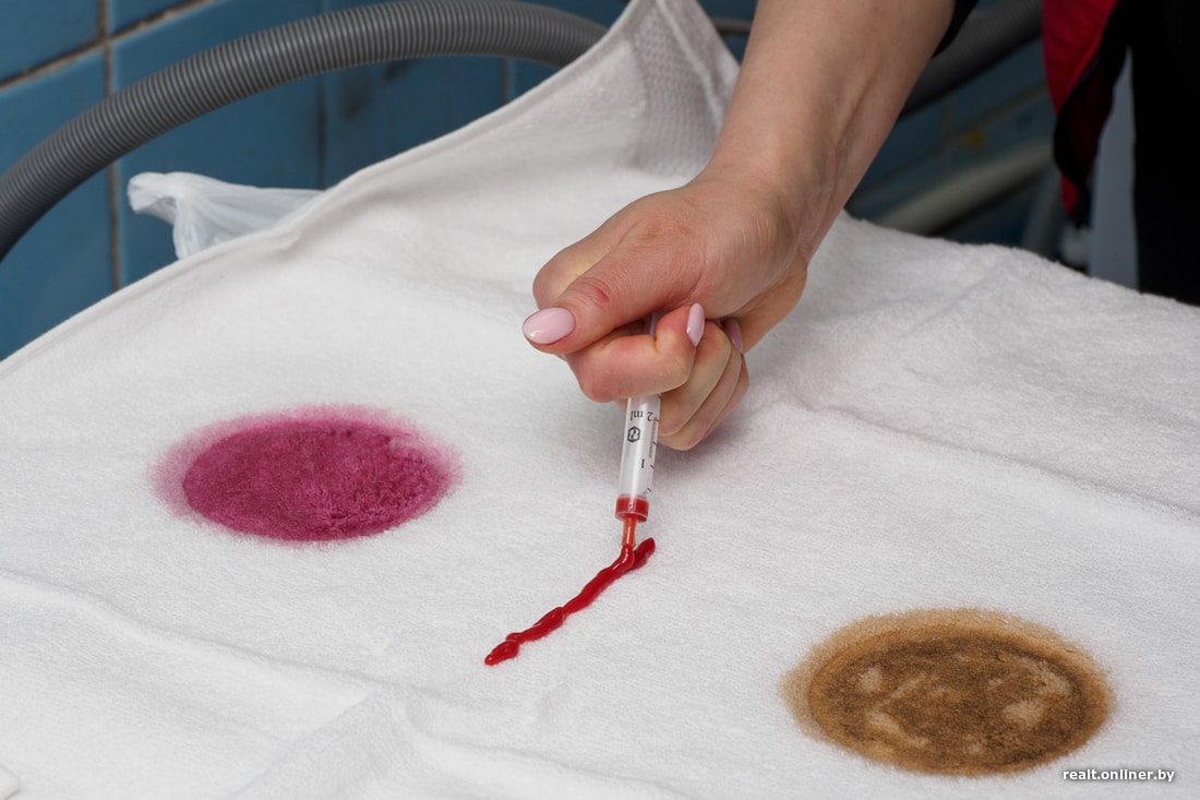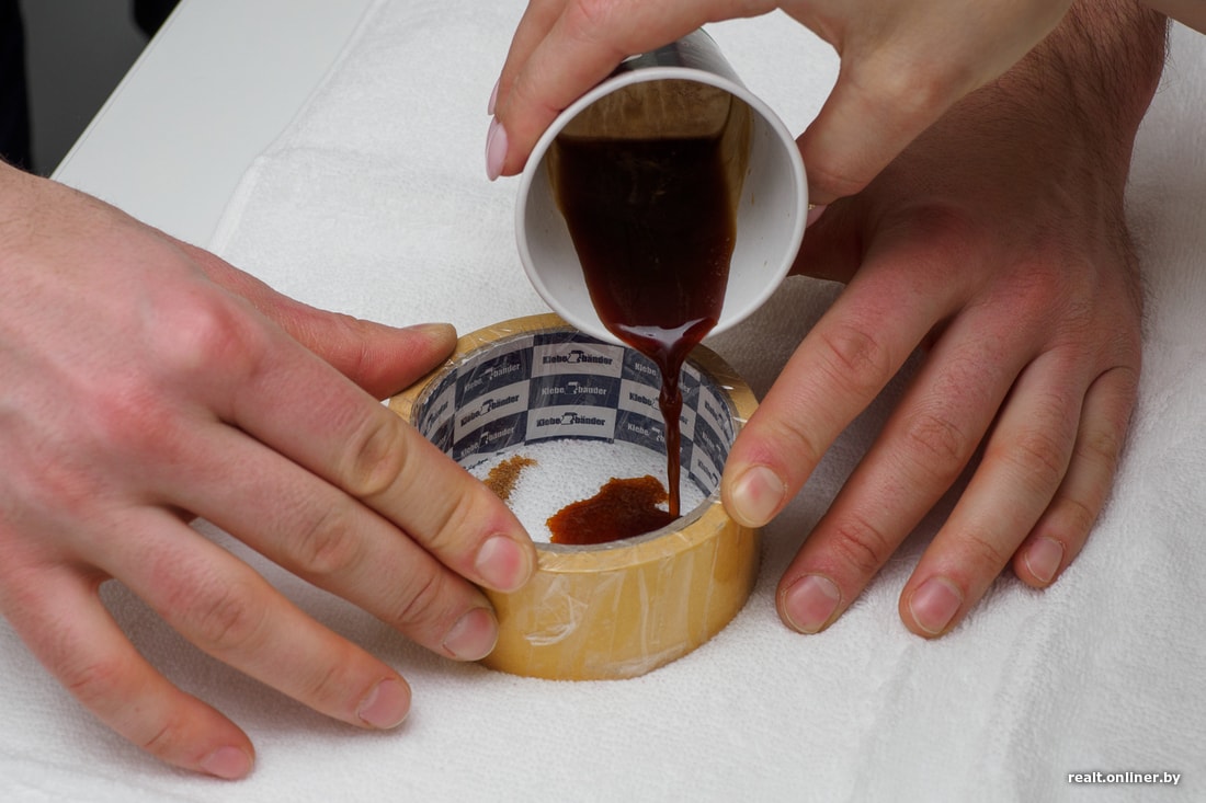 Жидкостей отмеряли по 25 мл, кетчупа и тональника набрали по 2 мл. Все это хорошенько разлили, втерли и оставили въедаться почти на сутки. Что мы сделали со второй партией полотенец, расскажем чуть позже.