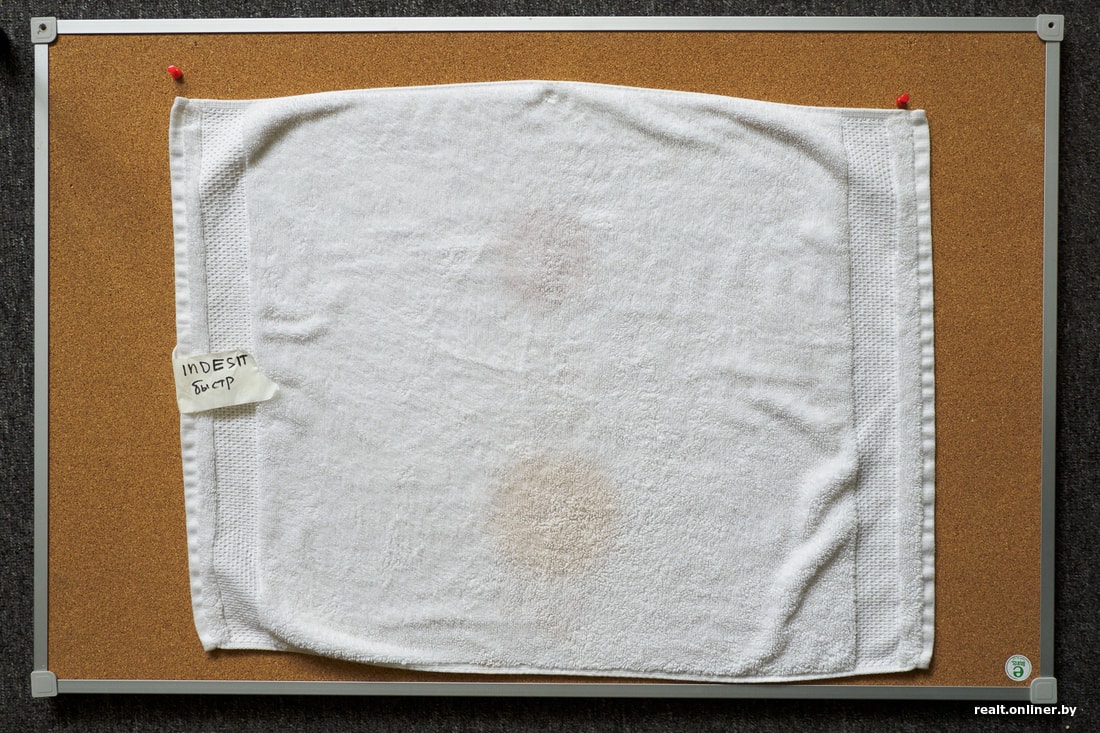 Что касается сушки, то на всех машинках мы выставляли средний режим: у разных производителей он называется по-разному, но суть понятна — достать белье и аккуратно сложить в шкаф. Время испытуемые тоже показывали разное, сокращая его по мере знакомства с полотенцем. Во время сушки отличилась Indesit — так как индикатора времени у этой машины нет, мы понятия не имели, сколько она планирует «обдувать» наше полотенце. А потому ждали, и ждали, и ждали, и снова ждали, поскольку агрегат решил ударно поработать. Честно говоря, после двух часов бессмысленных ожиданий это стало порядком раздражать.