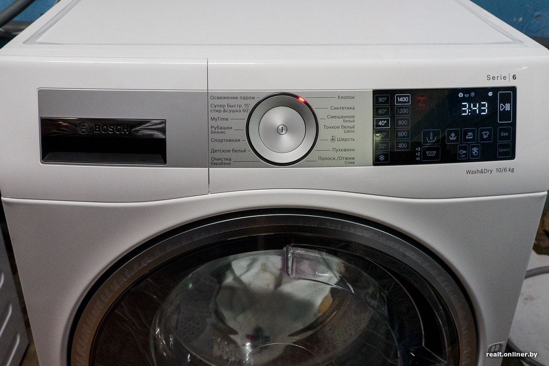 Самое продолжительное время стирки указала машинка от Bosch — 3 часа и 43 минуты. Мы рассчитывали, что, «изучив» полотенце, аппарат все-таки пересчитает время. Так и случилось — «мариновать» кусочек хлопка почти 4 часа не пришлось, машина «сдалась» на двух с небольшим часах.