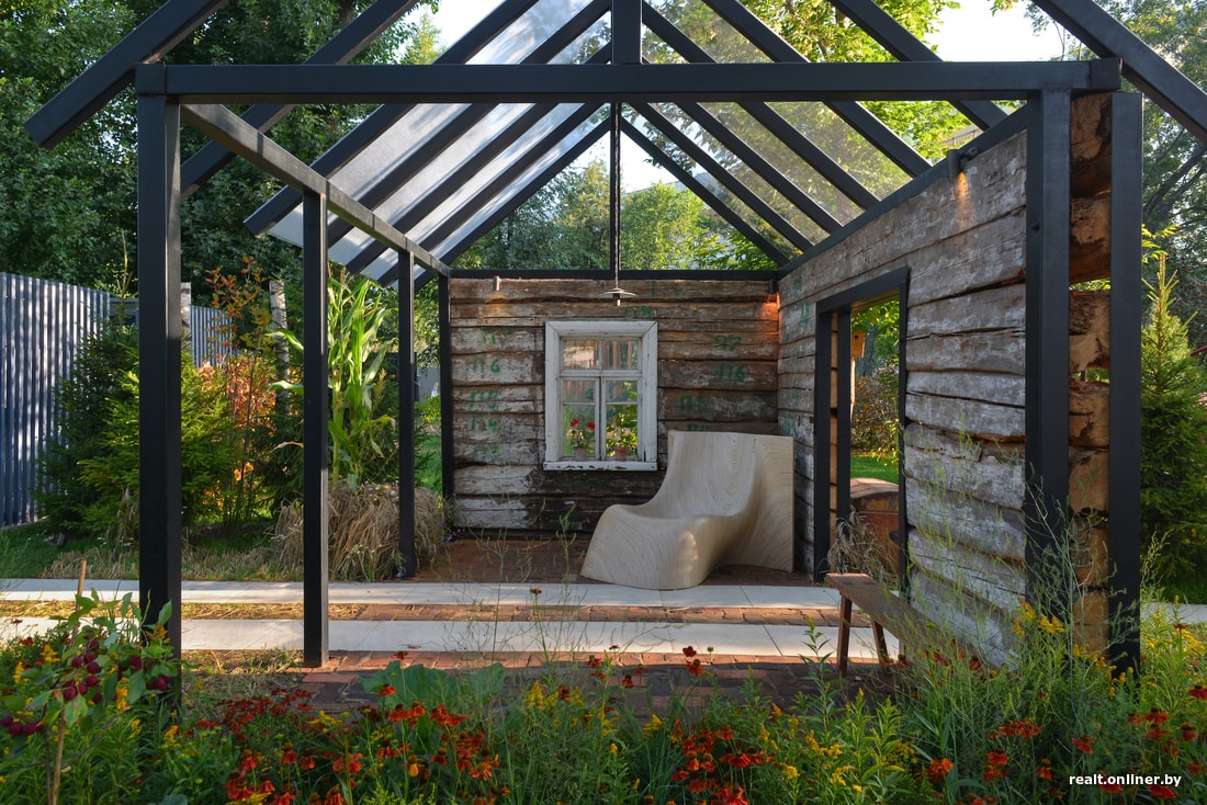 — Сад — это продолжение стилистики дома, он должен совпадать с ним по форме, цвету и материалам. Согласитесь, кантри с хай-теком не очень сочетаются. Предположим, что в основном здании лофт-интерьер. Тогда мы построим к нему такую же беседку, похожую на обрушившуюся крышу с застекленными перегородками, поверх которой будет идти проводка. А внутри повесим большущую классическую хрустальную лампу как некое противопоставление.