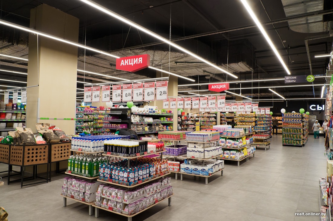 Гипермаркет расположился на тех же площадях, где еще в начале зимы работал Bigzz. Более того, даже размещение некоторых групп товаров совпадает, так что местным жителям не придется долго блуждать в поисках нужных продуктов — по старой памяти ноги сами приведут.