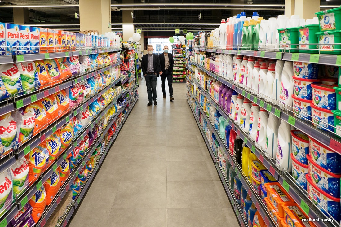 Мы привыкли, что открытие новых торговых объектов сопровождается великим столпотворением, а то и настоящей битвой за акционные продукты. Прознавшие про появление магазина пенсионеры заранее приходят к дверям и выжидают заветной минуты, когда можно будет ступить на порог свежего «гипера». И все же так случается не всегда. На проспекте Дзержинского, 3б сегодня тихо-мирно открылся новый круглосуточный «Евроопт» — люди, безусловно, были, но картинка совершенно точно получилась не такая, как обычно.