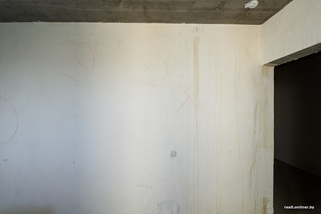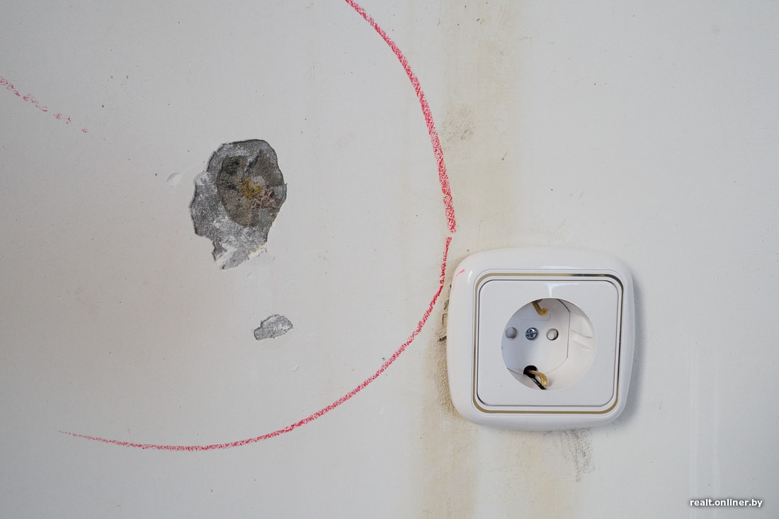 На стенах также заметны пятна ржавчины. Специалист рекомендует с ними бороться своими силами: снять шпатлевку, зашлифовав до голого металла, пройтись масляной белой краской и дальше делать ремонт. Так будет исключена вероятность того, что ржавчина в последующем проступит через обои или краску. Зачистить и перешпатлевать желательно также места с сильными желтоватыми потеками, они тоже потенциально могут преподнести сюрприз в будущем.