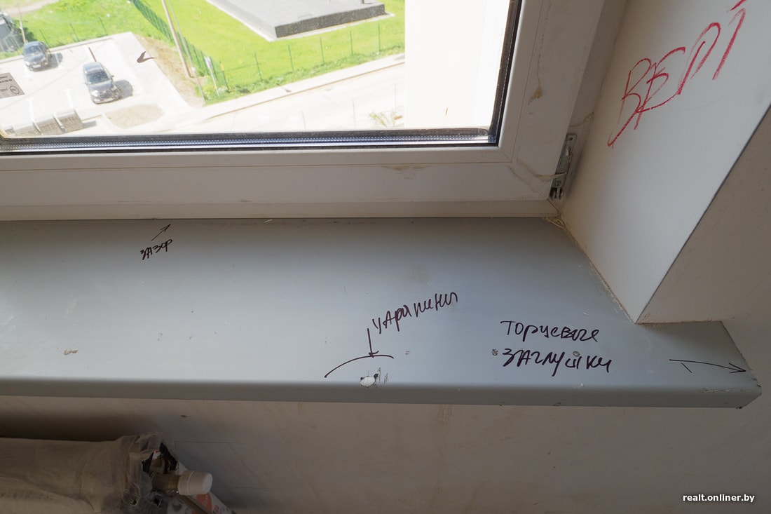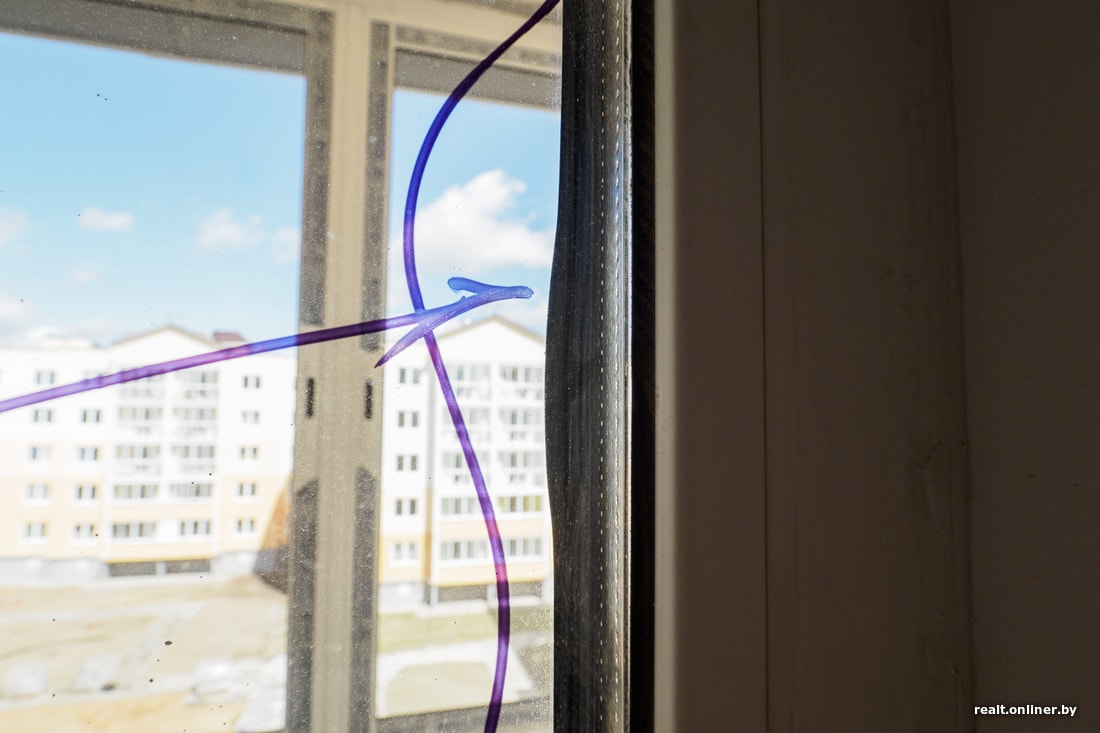 На удивление застройщику удалось уберечь окна. Они живые, целые. Под замену только один-два стеклопакета (как решат дольщики и застройщик). Из замечаний: отрегулировать створки, снять оставшиеся пленки, подправить кое-какие мелочи, в том числе по пластику, и все будет хорошо,  показывает Дмитрий.