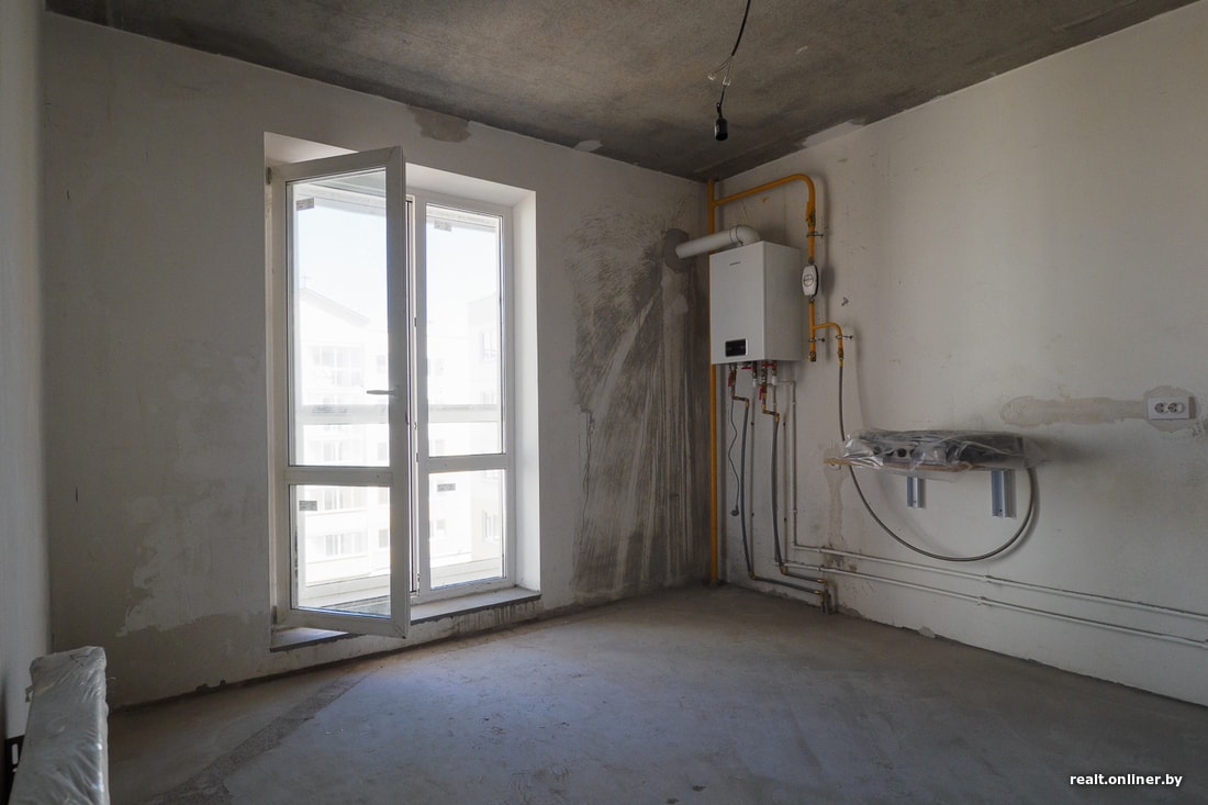Отметим, что двушка, которую мы осматривали, выглядела не очень опрятно: желтоватые потеки на стенах, наплывы на стяжке. От новостройки ожидаешь совсем другого  хочется, чтобы все сверкало и звенело. Зато наличие газового котла можно отнести к плюсам: жильцы всегда будут с горячей водой и отрегулируют отопление по своему усмотрению.