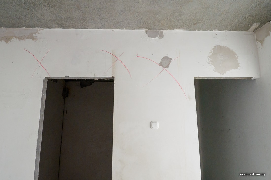 Что касается плоскости и вертикальности стен, то практически все в допуске. Буквально пару мест, где я нашел отклонения. Их надо подшлифовать либо перетянуть — и будет нормально. Но если вам нужны идеальные стены под покраску, придется самостоятельно поработать.