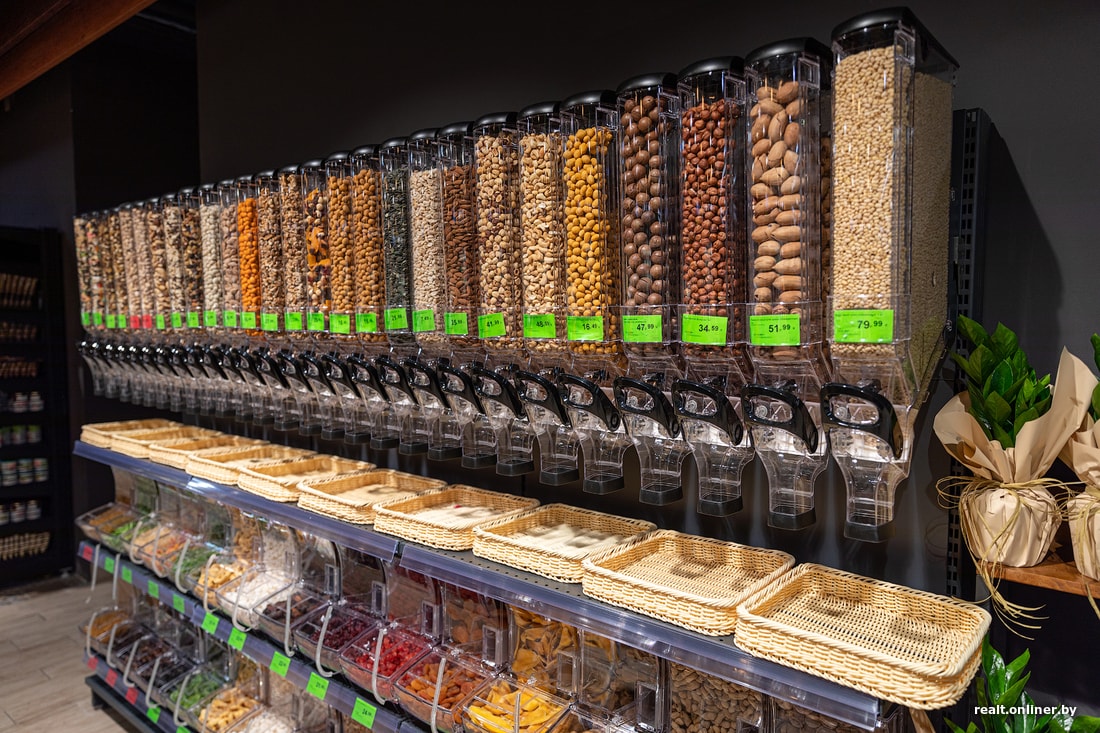 В магазине есть кофе-поинт с функцией оплаты на месте, холодильник со сладостями и аппарат для жарки пончиков. А еще есть дегустационный бар, где за символическую сумму можно заказать сет из нескольких винных позиций.