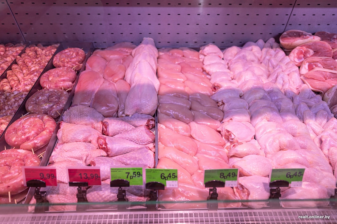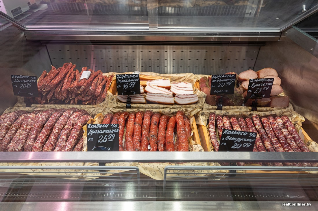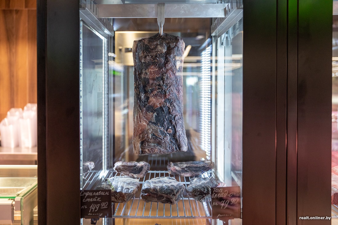 В мясном отделе предлагают свинину, индейку и кролика. В холодильнике — вызревшие стейки. Фарш могут измельчить и упаковать прямо на глазах: для него можно выбрать любой кусок мяса.