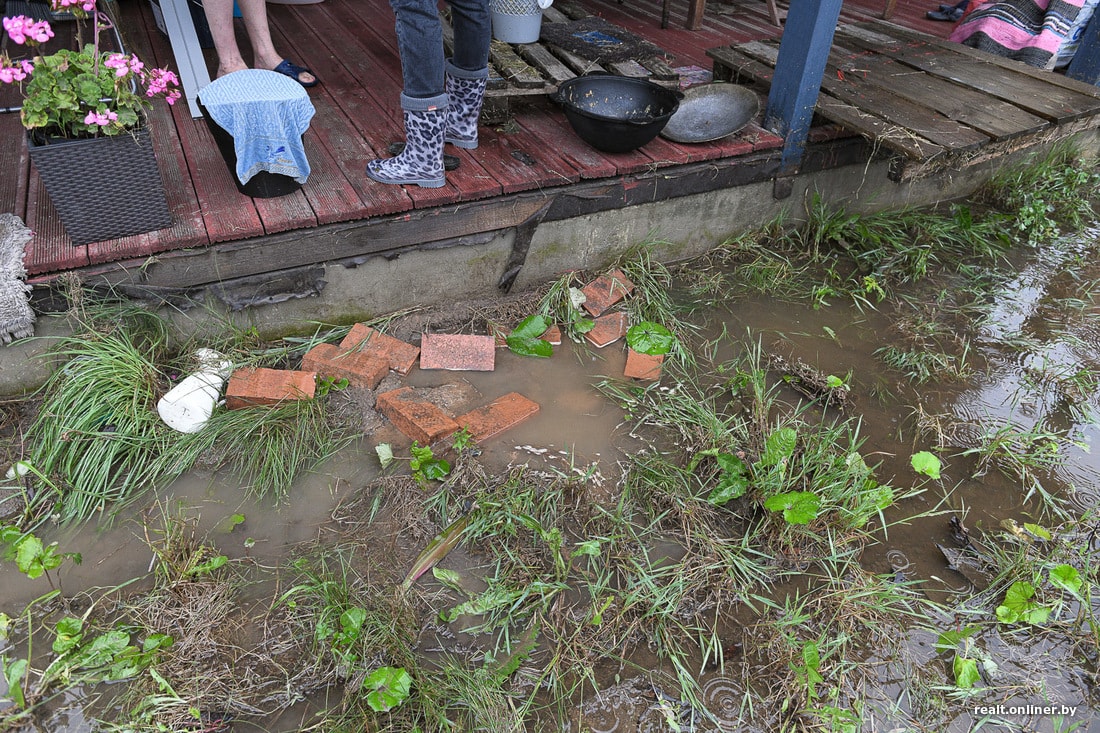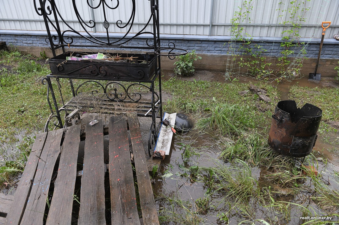 — У нашей улицы есть свой чат. Обсуждать ситуацию начали еще вчера, скидывали фото, удивлялись тому, что фура по самые колеса оказалась в воде. Свои убытки никто вроде как не считал, но, конечно, приятного мало, — обходя территорию, рассказывает минчанин. — По планам мы сегодня должны были продолжать работать с опалубкой, но, понятно, делать уже ничего не будем, пока вода не уйдет. Все, что было не закреплено, плавает под домом. Остальное держится. Так что можно сказать, я и не пострадал.