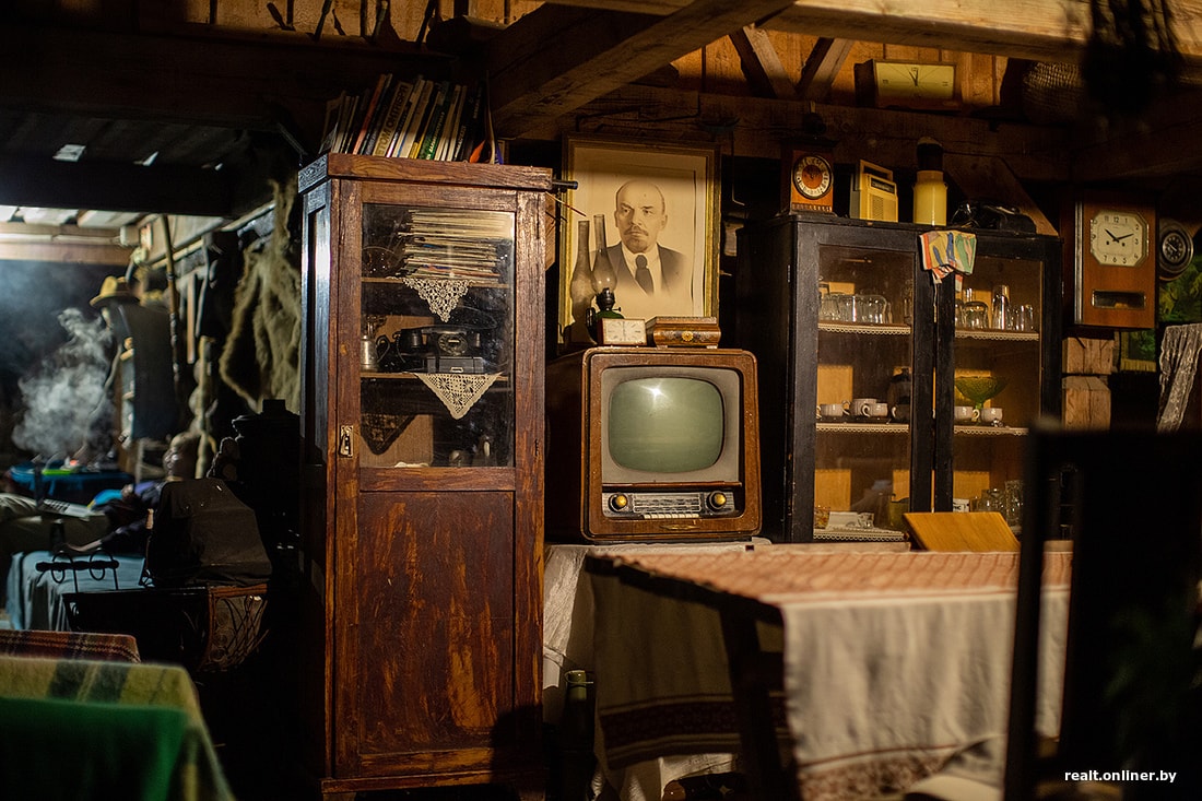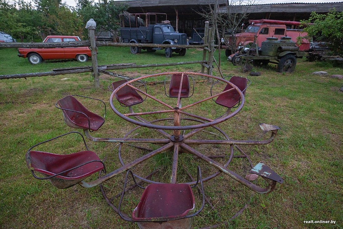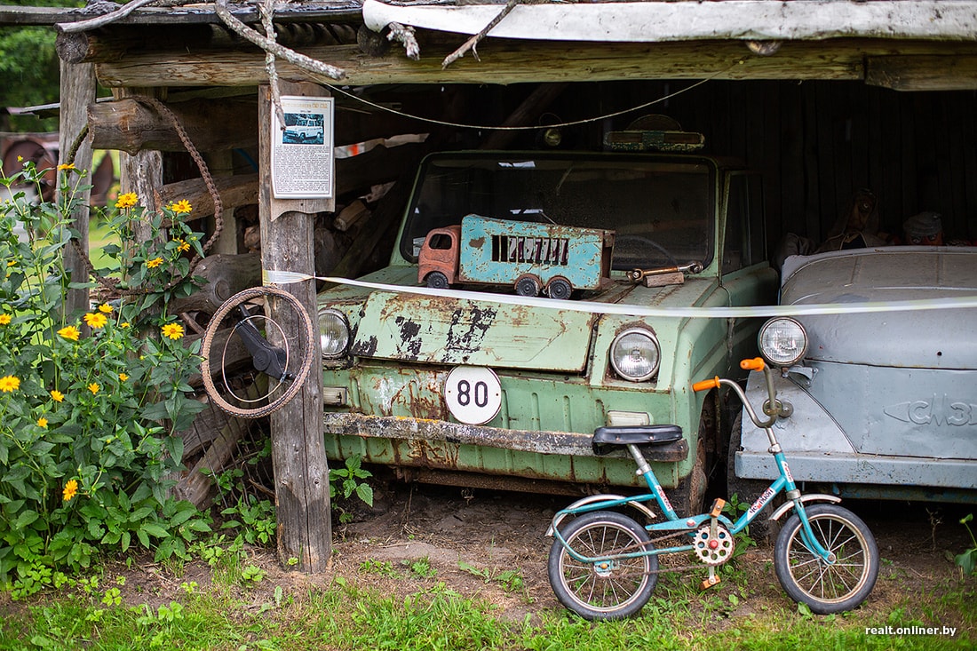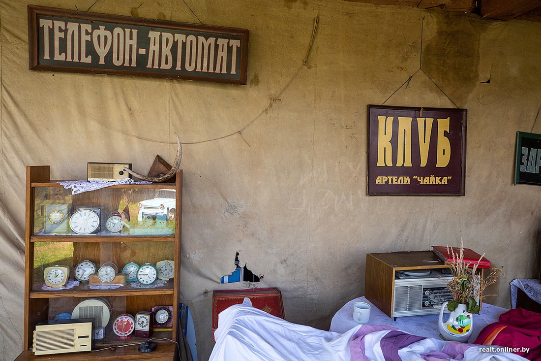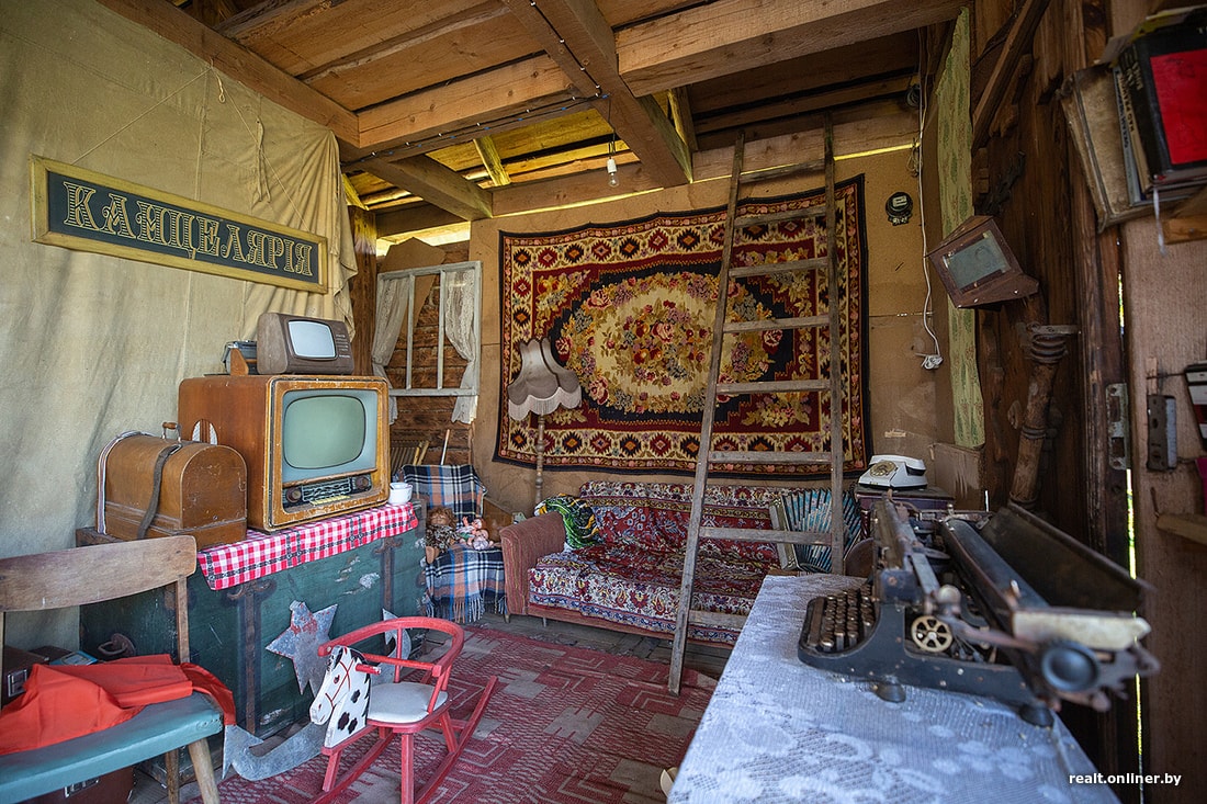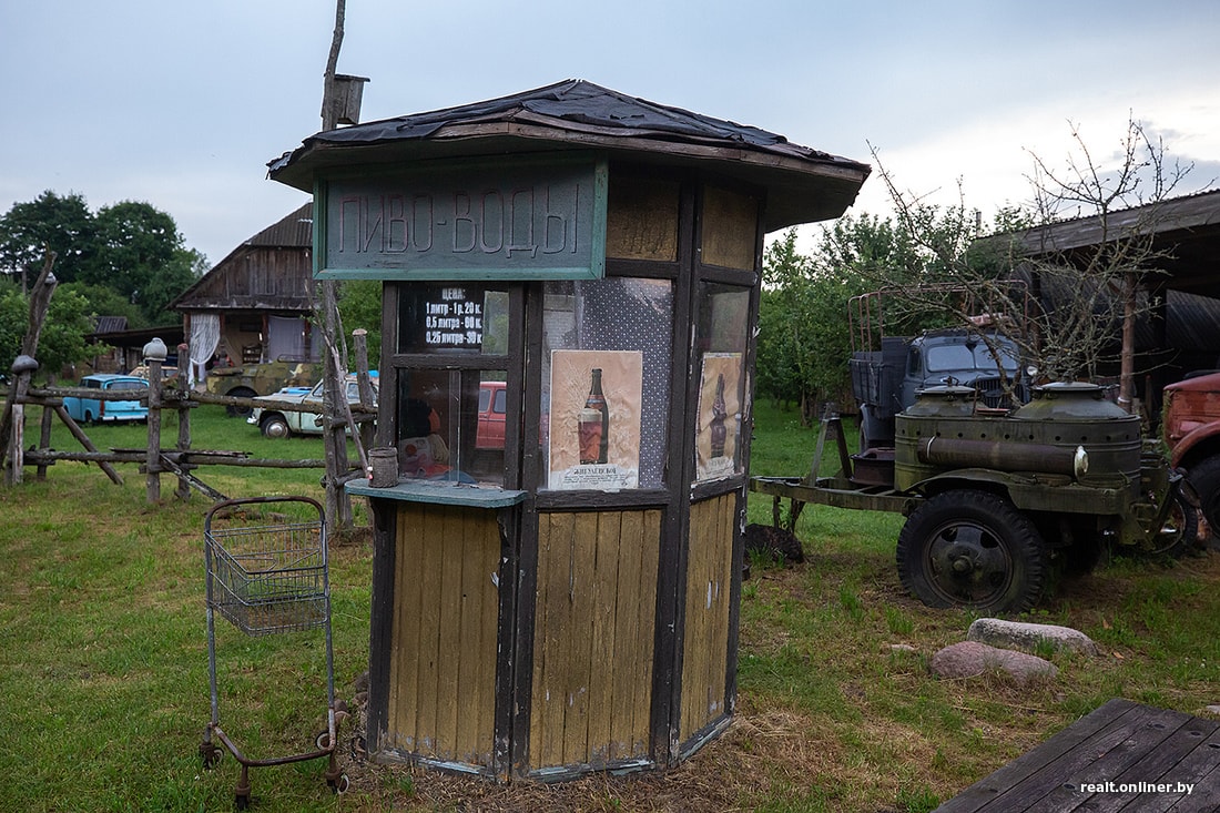 Помимо старых авто, по всему комплексу разбросаны тысячи мелочей, всем своим видом отсылающих к эпохе СССР: советский гарнитур, вышедшая из строя техника тех времен, деревянные ларьки, в которых раньше продавались вода и пиво, плакаты с лозунгами. Отдельного внимания заслуживает фотозона с коврами — зумеры оценят.
