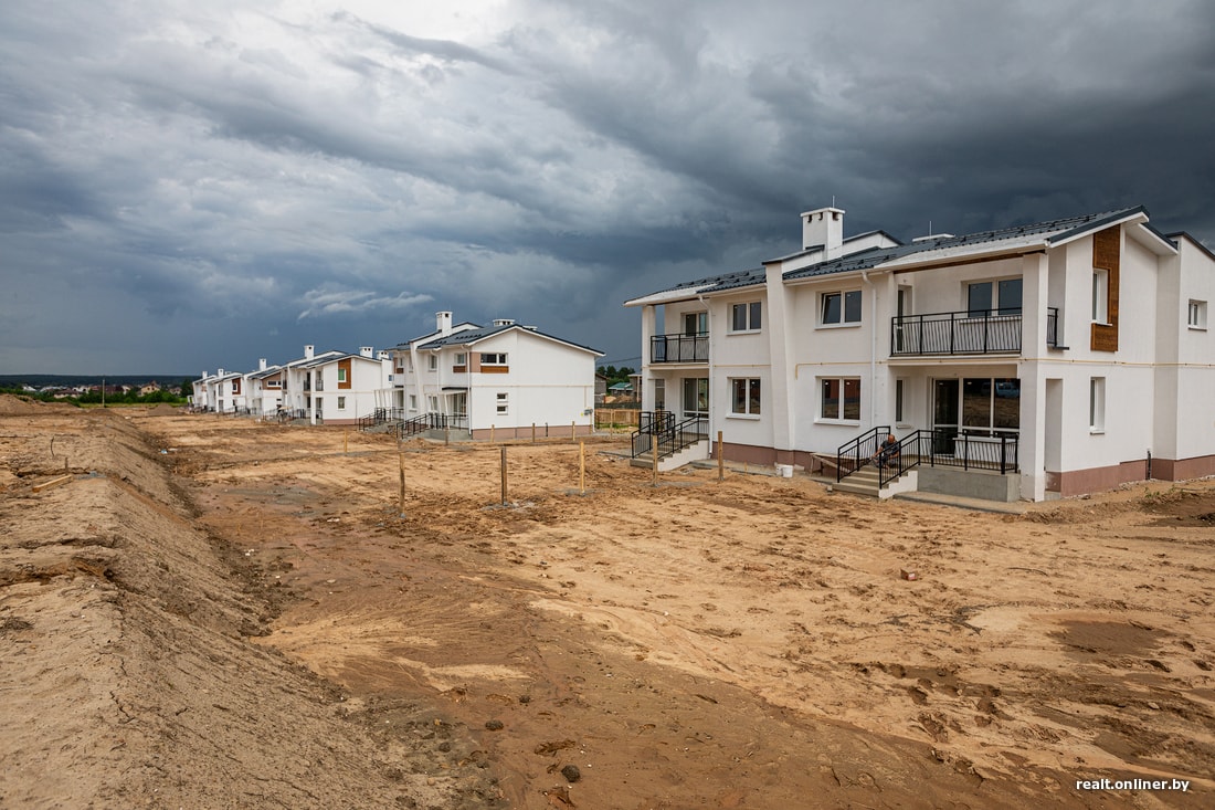 Всего в 20 километрах от МКАД (при этом в черте Минска) идет масштабная, но абсолютно незаметная для большинства стройка. Ну кто поедет в «условно» столичный микрорайон Сокол, чтобы посмотреть на процесс возведения таунхаусов/дуплексов, которые тебе никогда не достанутся? Вот и живет настоящий город в городе полутайной жизнью, не попадая в объективы видеокамер и фотоаппаратов. Однако за красивыми, еще не успевшими выгореть фасадами кипят страсти: дольщики, продавшие свои квартиры и взявшие коммерческие кредиты для того, чтобы заполучить заветные «квадраты», жалуются на большую задержку сроков реализации проекта и неясные перспективы переезда. Onliner разбирался в ситуации.