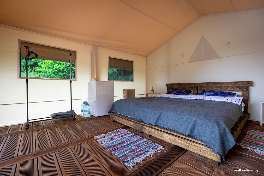 — Это рассчитано на людей, которые хотят тихого семейного отдыха. Чтобы можно было спать в палатке, слышать пение птиц и стрекотание кузнечиков, но в то же время спать в удобной кровати и не париться с надуванием матрасов и так далее.