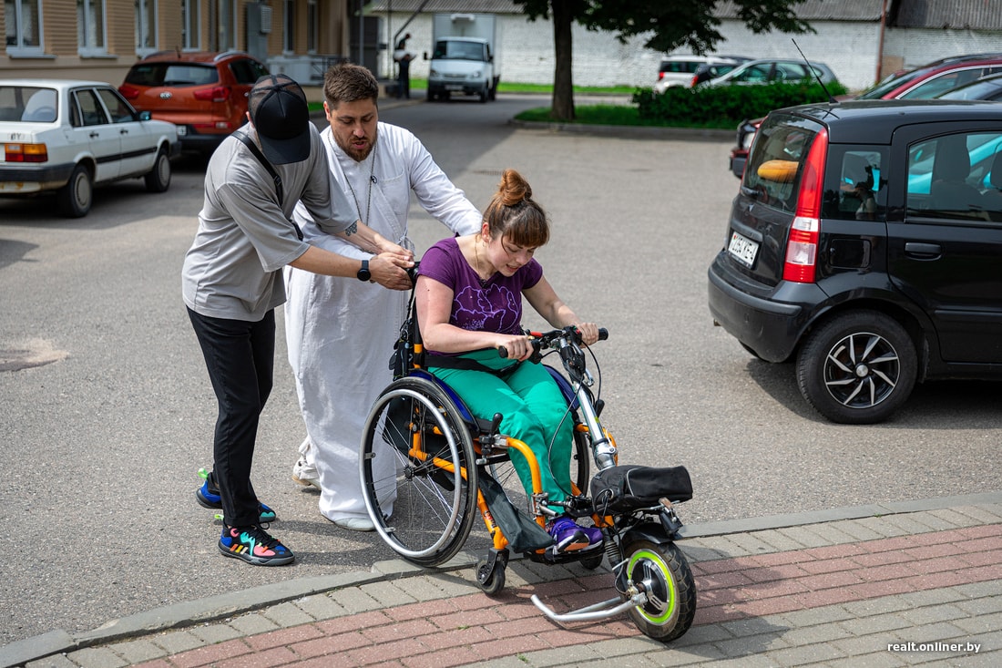 Недавно девушка обзавелась новой «электроприставкой» к коляске, благодаря которой может теперь еще смелее действовать и преодолевать большие расстояния. Подстраховка нужна только при съезде с бордюров или заезде на них же.