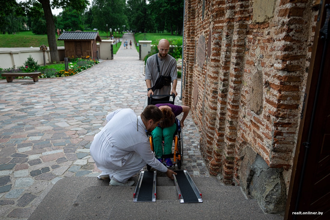 В один из жарких июльских дней мы с самого утра оказались в Гродно — прекрасном городе, который, кажется, любят все белорусы. Гулять по живописным улочкам и любоваться достопримечательностями, на собственном примере показывая, что все возможно, будет новая позитивная четверка. Место встречи — относительно новый железнодорожный вокзал, который сразу строили с учетом особых потребностей некоторых людей. (Лифт, позволяющий спуститься с высокого второго этажа, работает, а помощь по звонку приходит быстро — мы проверили.)