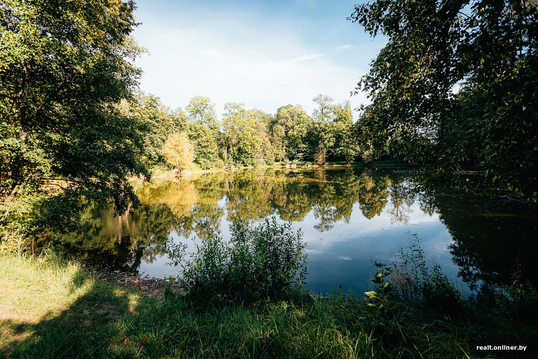 Впрочем, возможно, главное достоинство места — старый пейзажный парк площадью около 10 гектаров с прудом, на берегу которого и расставлены некоторые здания усадьбы. За парком и прудом давно не ухаживали, но это, возможно, лишь придало ему таинственности. Особый колорит окружению добавляли советские скульптуры и вазы, до недавних пор расставленные в этих одичавших зарослях. Но об их происхождении и нынешней судьбе чуть позже.