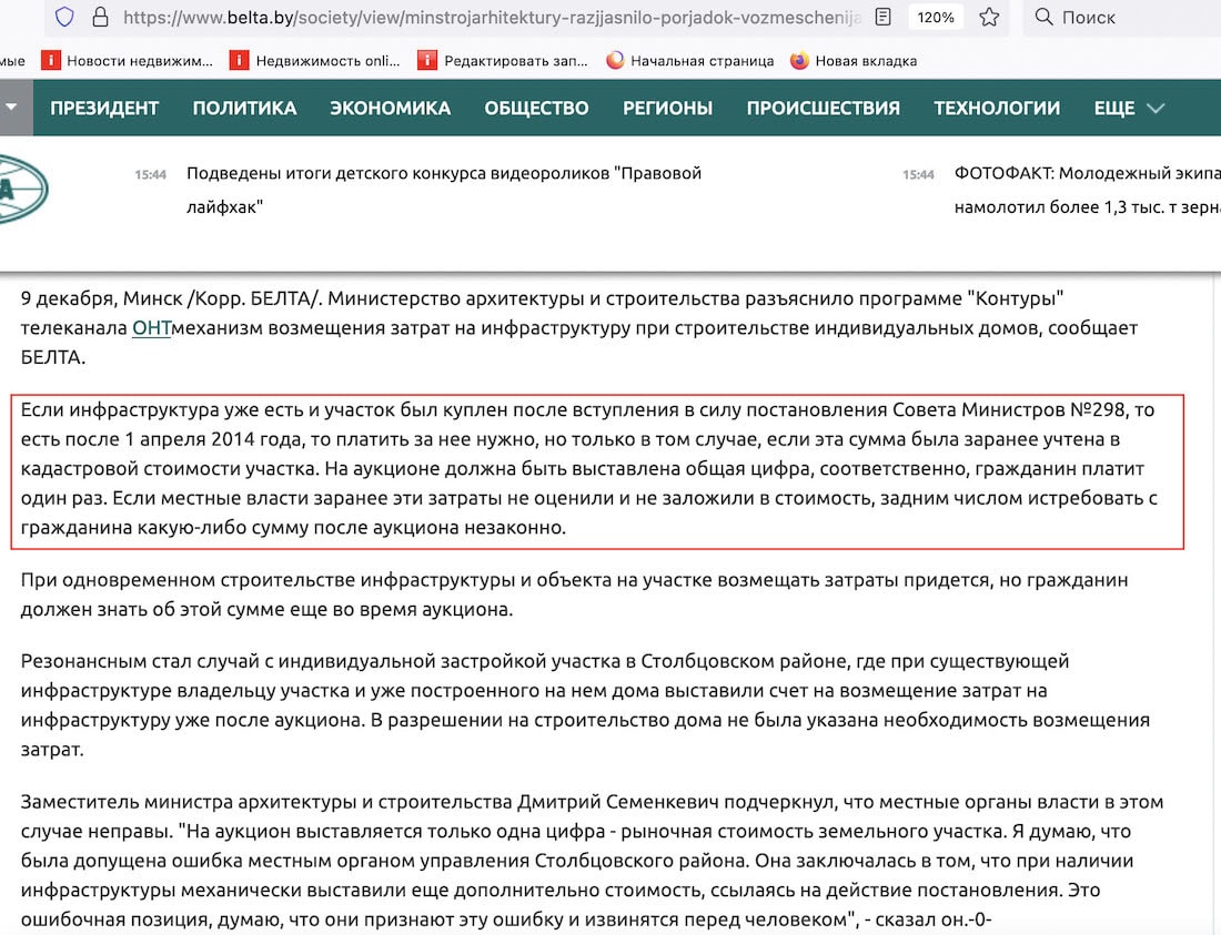 Словам девушки есть множество подтверждений. Причем от авторитетных источников, а не таких же бедолаг. Вот скриншоты с сайтов pravo.by, belta.by, самого Министерства архитектуры и строительства. Если этого мало, можно даже посмотреть репортаж в «Контурах», где описывается схожий случай, правда из Столбцовского района.