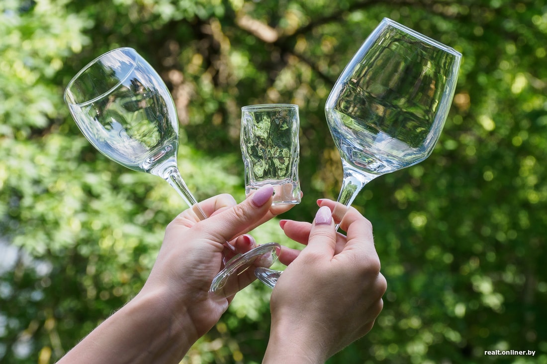 С бокалами не задалось — некоторые из них были еще влажные, вы только посмотрите на эту «капель». Более того, один из кейтеринговых бокалов выразительно пах вином!