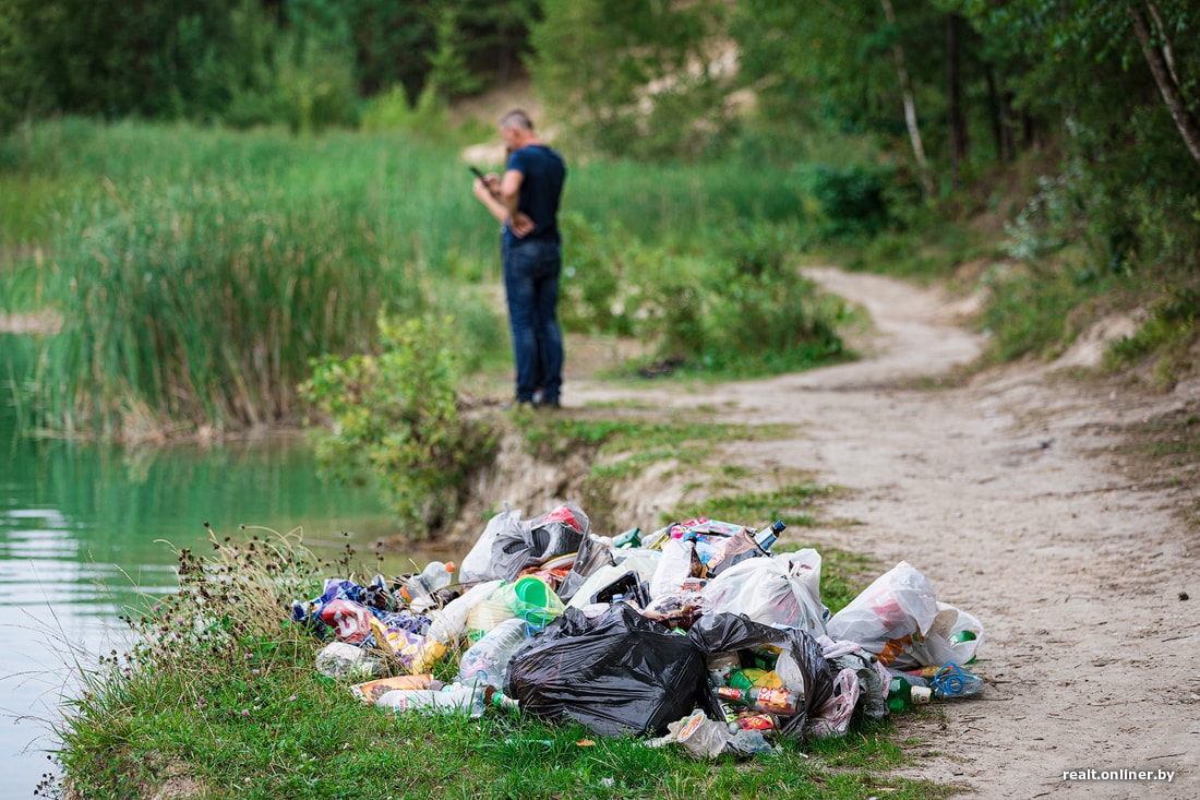 Когда сюда рванули толпы отдыхающих, берега оказались откровенно загажены. Добрые люди складывают оставленный мусор в кучи, которые в некоторых местах уже достигают высоты лесного муравейника и даже стога сена, но вывезти их отсюда некому. Кроме того, под каждой елкой лежат пустые бутылки и «вечный» пластиковый мусор.