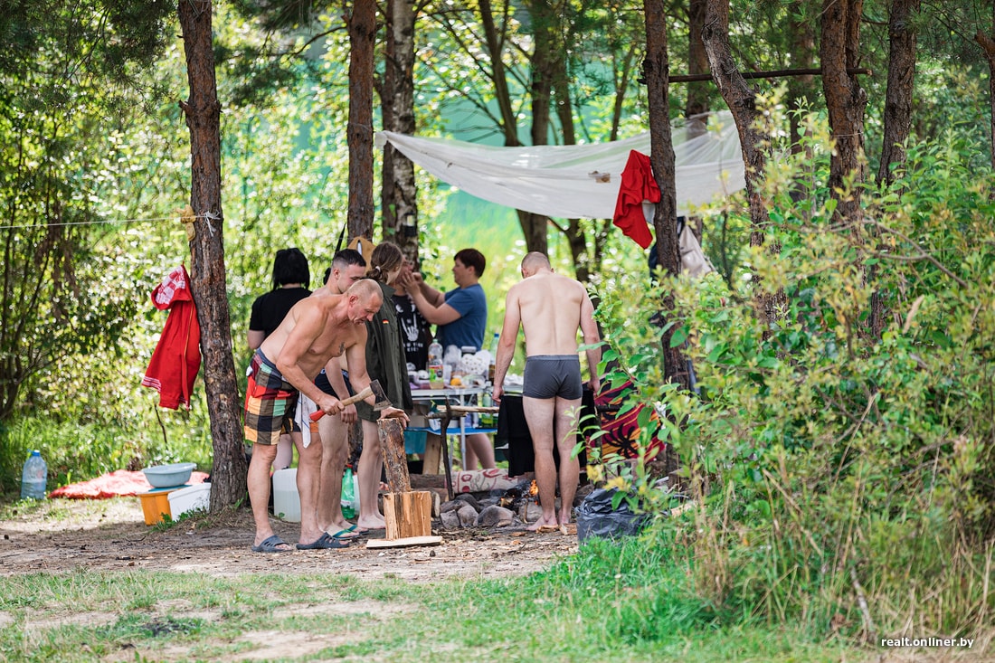 — Мы из Осиповичей сюда приехали. Ехать километров сто, наверное, но в наших краях такой красоты и близко нет. Пару часов назад прибыли, начали место искать — все или загажено, или занято. Решили расчистить поляну от мусора, все собрали, а потом вот это местечко освободилось, так мы переместились и еще один участок почистили. Все бы так делали — не было бы проблем. Потому что водичка здесь идеально чистая. Я как-то даже в бутылку набрал (хотел на анализ завезти, да как-то руки не дошли) — идеально прозрачная, — рассказывает Вадим.