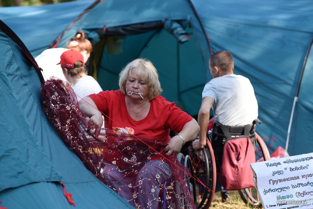 — Каждый год вносим улучшение, раньше света не было — провели электричество, сделали воду, душ, причем не просто душ, а с горячей водой, туалет, не было спуска для водных развлечений — сделали пандус. Когда начинали 13 лет назад, думали, что природа и колясочники — несовместимые вещи, в городских условиях собрать людей — не каждый выйдет из дома, а тут природа, вопрос с туалетами, водой, где жить, на чем спать. Но мы решились и в первый раз собрали человек 30 на колясках, а с каждым годом посетителей становилось все больше и больше. В этом году из-за коронавируса не смогли приехать из России друзья, в Витебске стартовало обучение «инклюзивный кассир», паралимпийцы на сборы уехали — оттого и людей меньше.
