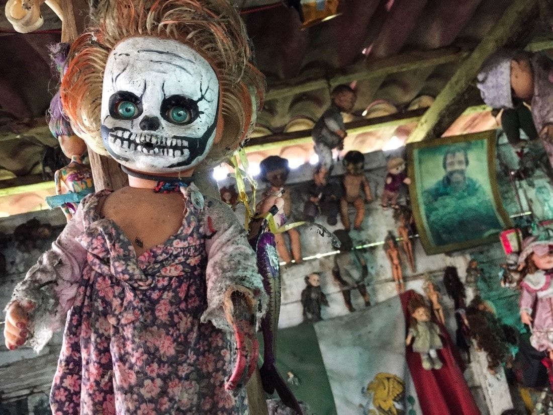 Так в чем же прелесть «Острова кукол», отчего он приводит и в восторг, и в ужас одновременно? В 1950-е на этой чинампе (а это именно тот самый наследник бывших ацтекских плантаций) поселился некий Хулиан Сантана Барреро, который занимался тем, чем и положено заниматься на чинампе — выращивал овощи, цветы, ловил рыбу в окружающих каналах. Общепринятая история утверждает, что однажды он услышал крики тонущей девочки. Прийти на помощь ей он не успел, обнаружив на воде лишь одинокую куклу. Произошедшее, видимо, немало впечатлило молодого тогда человека. По ночам он стал слышать крики, стоны утопленницы, в которых ему почудились требования о новых куклах. Надо сказать, что в мексиканском фольклоре культ смерти вообще и легенды про утопленниц в частности имеют первостепенное значение. Достаточно вспомнить «Ла Йорону» («Плакальщицу») — призрак женщины, утопившей собственных детей и находящейся в вечном их поиске. Этот персонаж, в своей крайне агрессивной интерпретации, стал даже героем американских фильмов ужасов. Поэтому к вопросу усмирения утонувшей девочки дон Барреро подошел максимально ответственно.