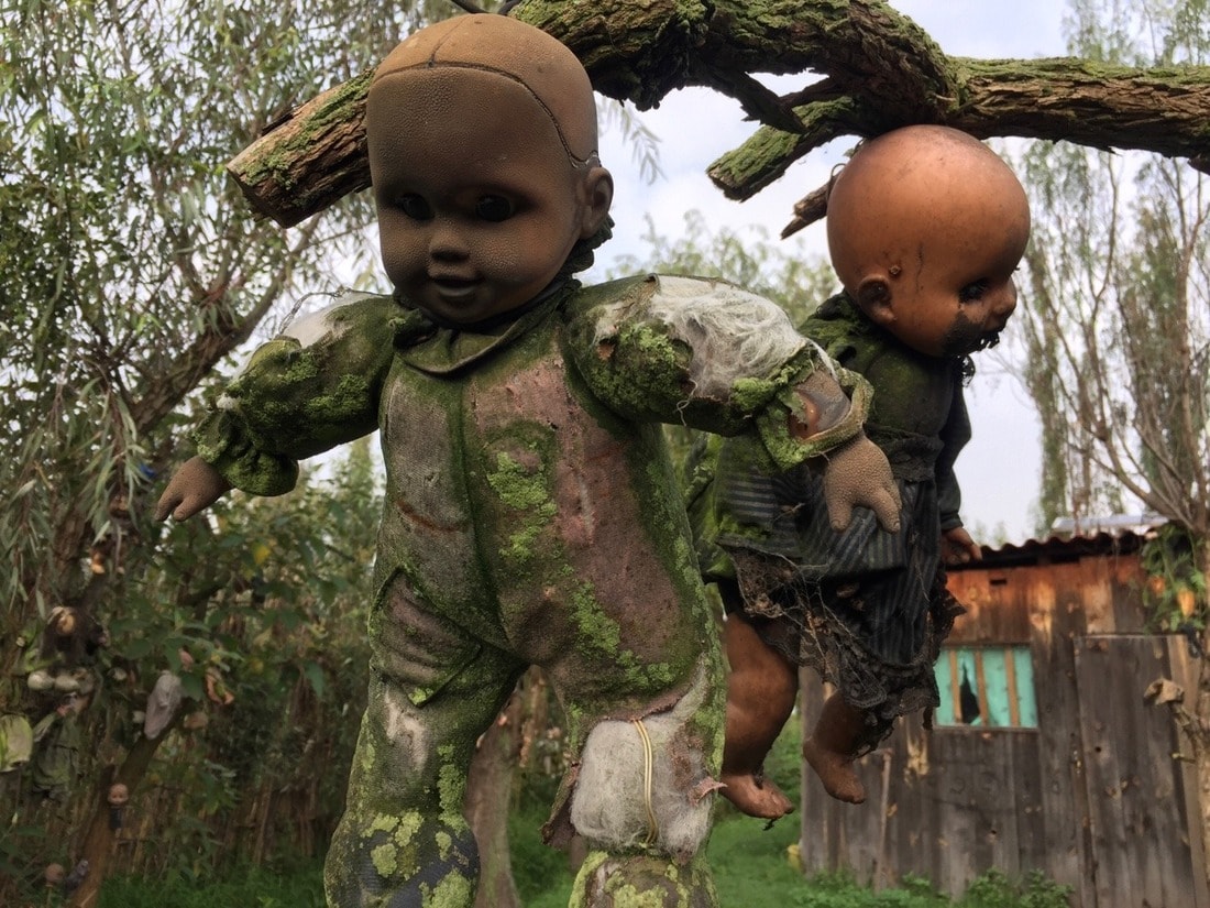Пытаясь добиться спокойной жизни, единственный обитатель острова стал делать своей «соседке» бесконечные кукольные подношения. Он развесил, разбросал по своей чинампе тысячи кукол. Призрак, впрочем, не удовлетворялся (по мнению несчастного садовода), и тогда он стал оставлять ему намеренно изуродованные игрушки. В итоге за полвека (Барреро умер в 2001-м) на его клочке земли накопилось гигантское количество артефактов, весьма живописно старевших под действием осадков и времени.