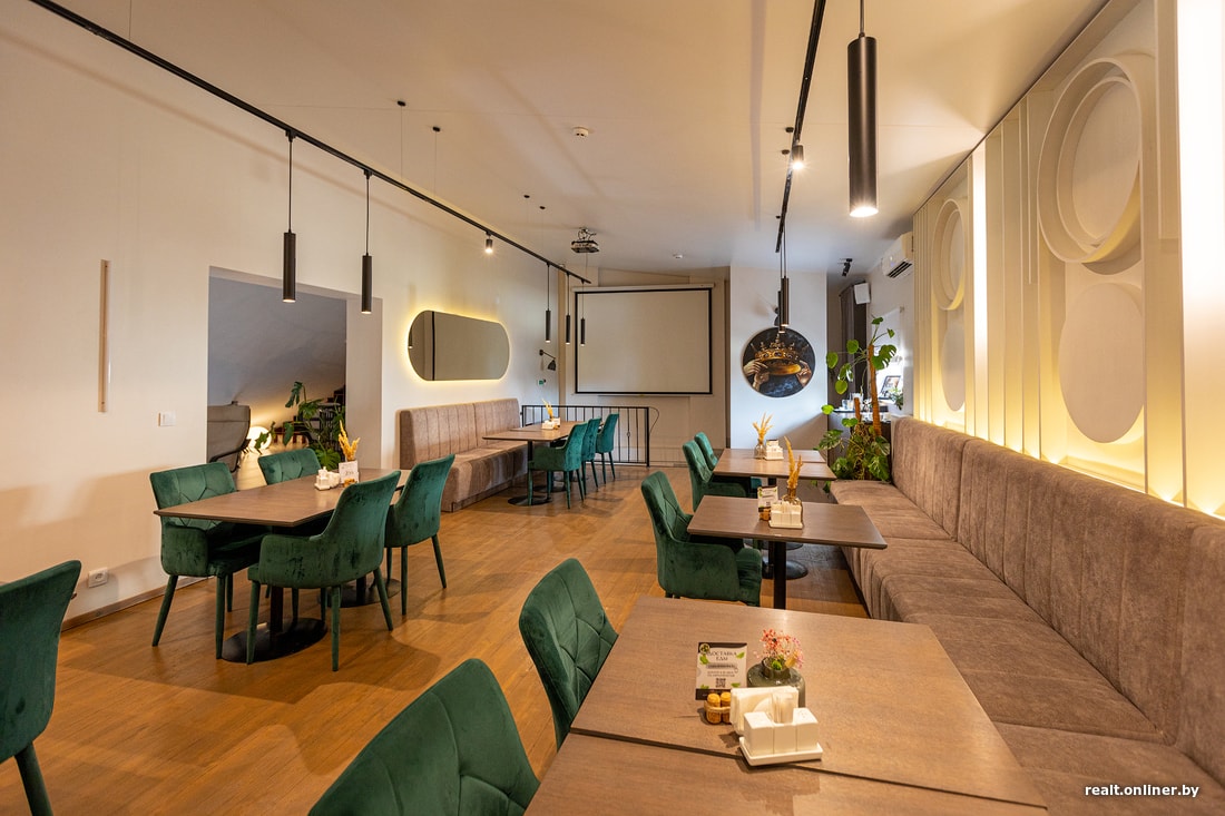 Номерной фонд здесь совсем небольшой — всего 13 комнат. Внизу есть кафе, продолжается реконструкция еще одной части, где будет конференц-зал и зал торжеств, большая спортивная зона и, возможно, что-то еще.