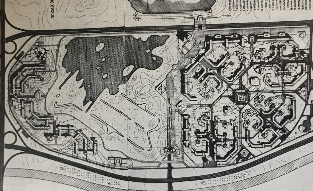 Этот пруд, занявший место бывших торфоразработок, и окружающую его охраняемую территорию требовалось аккуратно сохранить, включив в урбанистическую среду будущего жилого района. Это была очень важная особенность конкурса, ведь в 1986 году, на фоне аварии на Чернобыльской АЭС, вопросы экологии получили особенную актуальность.
