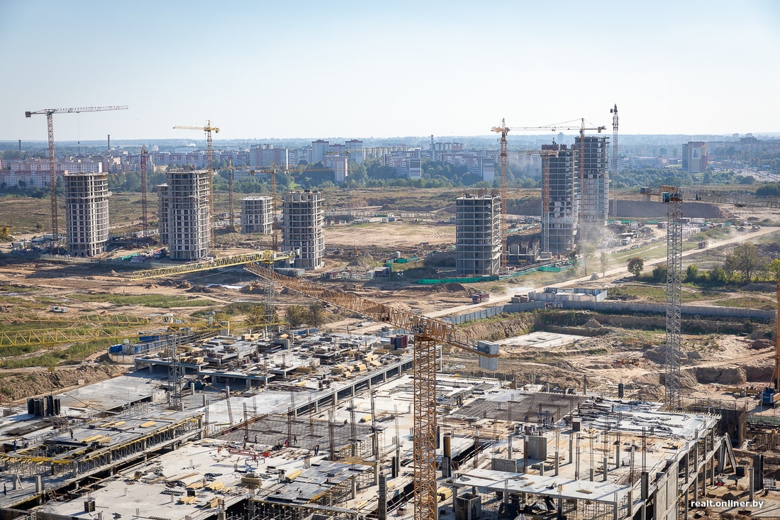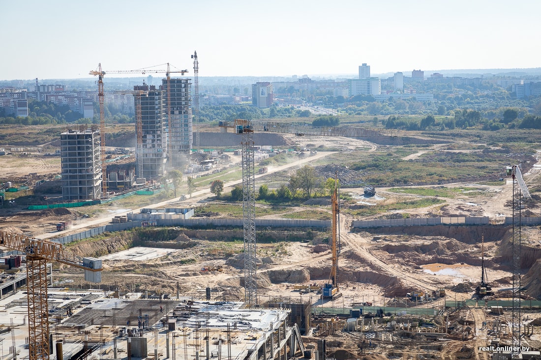 Если «Маяк Минска» его создатели презентовали как «город в городе», то для «Минск-Мира» аналогии и не подберешь («государство в городе» звучит неблагонадежно). Масштабы застройки бывшей территории аэропорта впечатляют: высотки кучкуются по кварталам, глядя друг на друга пристально и почти в упор. Но жилые дома — это только «разогрев». Главные стройки только набирают оборот. Оценим, что сейчас происходит на площадках, где в будущем должны вырасти международный финансовый центр и неповторимый по своим габаритам многофункциональный центр.