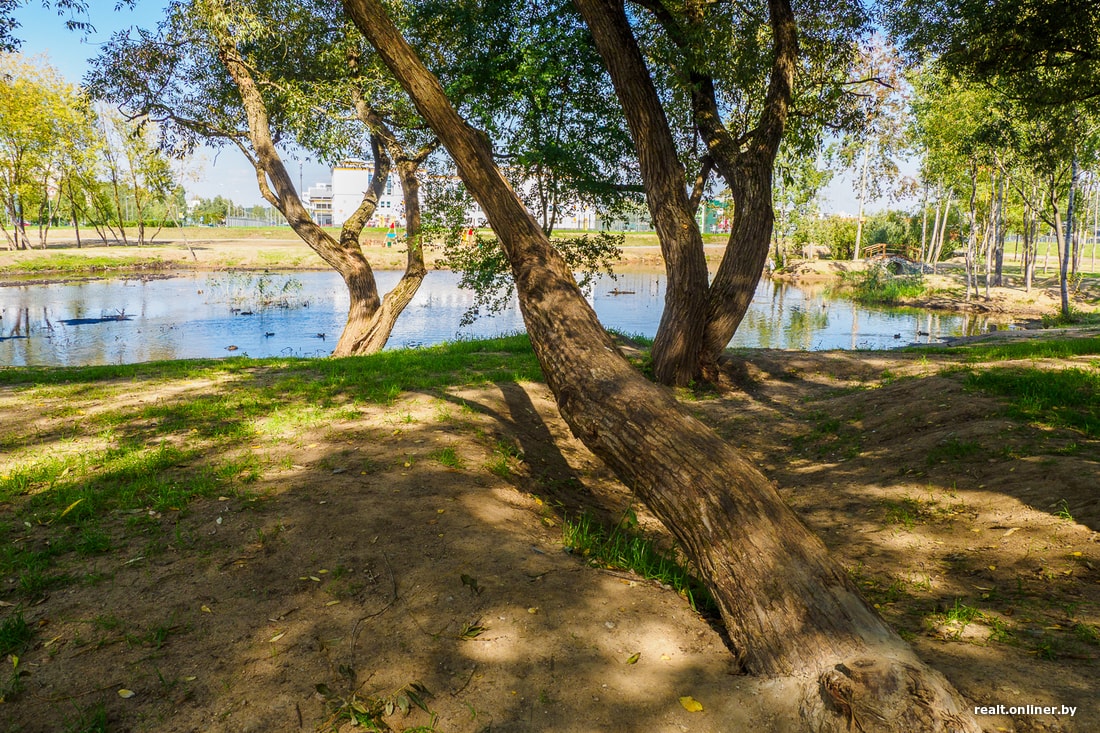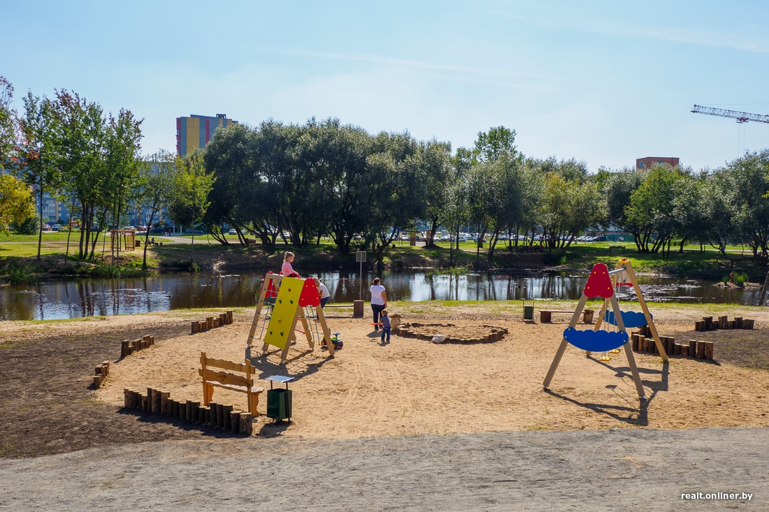 — В марте председатель Мингорисполкома поручил за летний период обустроить зоны отдыха на недостаточно благоустроенных озелененных территориях в каждом районе столицы, — приводит агентство «Минск-Новости» слова заместителя директора «Зеленстроя» Первомайского района Елены Басан. — Совместно с администрацией района было принято решение о благоустройстве территории возле пруда на улице Ильи Копиевича. Работы начались в апреле, как только позволила погода. И вот за пять месяцев заросший водоем превратился в очень красивое место.