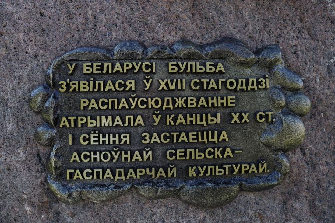 В агрогородке Дещенка Узденского района установили символичный знак картошке, сообщает Mlyn.by. Место выбрано не случайно: каждую осень здесь проходят картофельные ярмарки и фестивали, а ранее в агрогородке появился музей картофеля. На одной из ярмарочных площадей и появилась скульптура — камень, на котором стоит корзина картошки, тоже каменная.