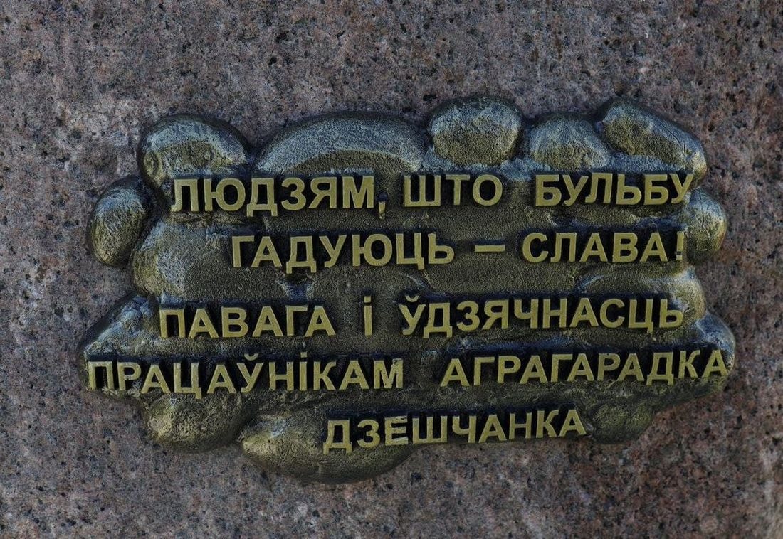 В течение года жители Дещенки выбирали лучший проект будущего памятника, и после общего голосования была определена модель-победительница — камень с корзиной картошки наверху. Финансовую отчетность взял на себя глава фермерского хозяйства «Олимп-Агро» Юрий Лойка.