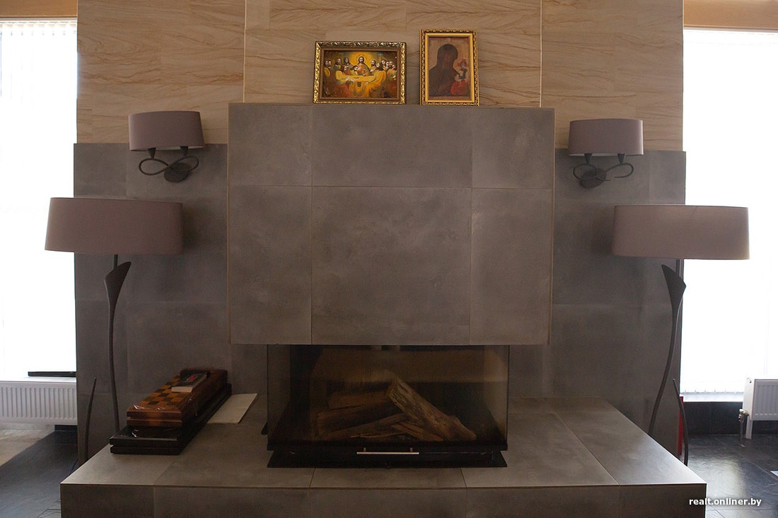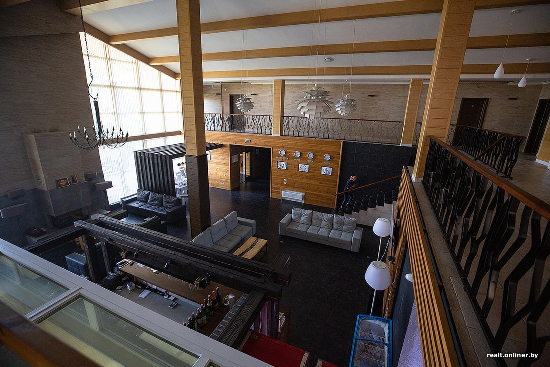 Интерьер пестрел деталями в основном на морскую тематику: с потолка свисают светильники в форме лотоса, а центральная лампа и вовсе посажена на крючок. В перилах запутались камыши, а на стене в столовой красовалось панно из разноцветных камней, поднятых со дна Припяти. Это — карта, на которой хорошо видны все изгибы реки и, собственно, остров.