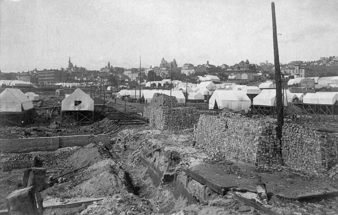 Абсолютное большинство домов в Сиэттле не просто были деревянными. Из сети деревянных труб состояла даже система канализации. Здания стояли на деревянных же сваях — центр города находился в постоянно затапливаемой водами соседнего залива низине, и это было вынужденное решение. Гореть здесь было чему.