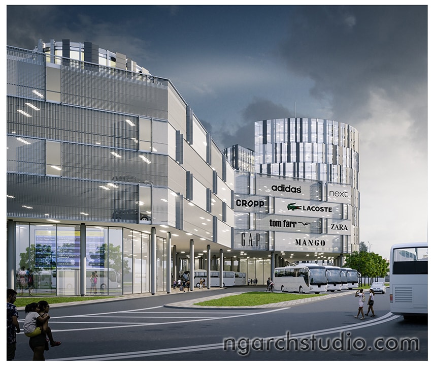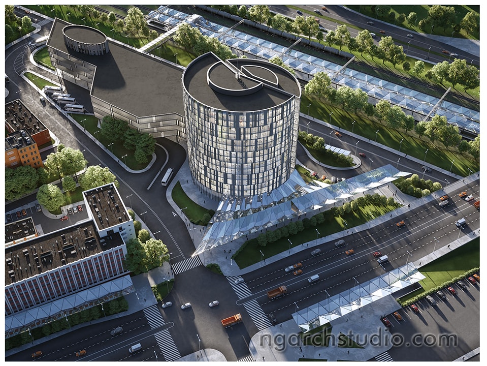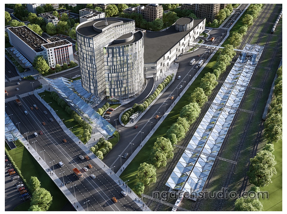 Концептуальным решением предполагалось снести существующие строения, например здание бывшей мебельной фабрики, где недавно прошла реконструкция. Там предлагали построить многофункциональный бизнес-центр с интегрированными в него объектами транспортных линий, торговли, общественного питания, паркингом на 500 автомобилей.