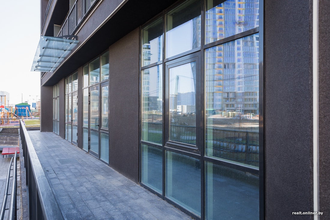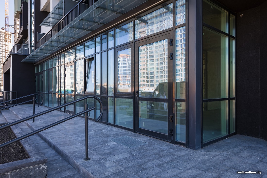 Чуть позже появился и обновленный вариант: квартиры получали отдельный стеклянный вход, но не огораживались вообще. Выглядит не очень надежно с точки зрения безопасности, но покупатели нашлись. Например, одна владелица такой квартиры была рада именно «приземленности»: у женщины проблемы с ногами и отсутствие лифтов-ступенек было ей только в радость.