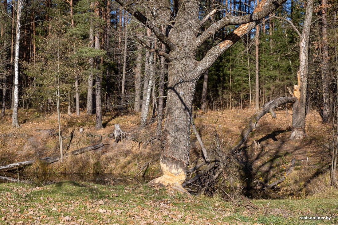 — Вообще, это естественный процесс: бобры грызут сейчас, грызли и раньше — это их образ жизни. Только в нашем районе где-то тысяча особей этого грызуна. Представьте, сколько за год они стачивают деревьев, — говорит главный лесничий Сергей Барановский. — Никаких обязательств по охране деревьев в законодательстве нет. Я знаю другие места, где деревьев испорчено гораздо больше.