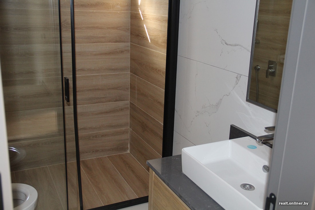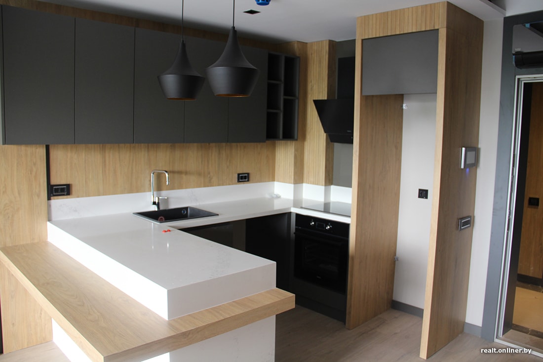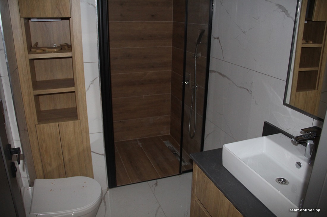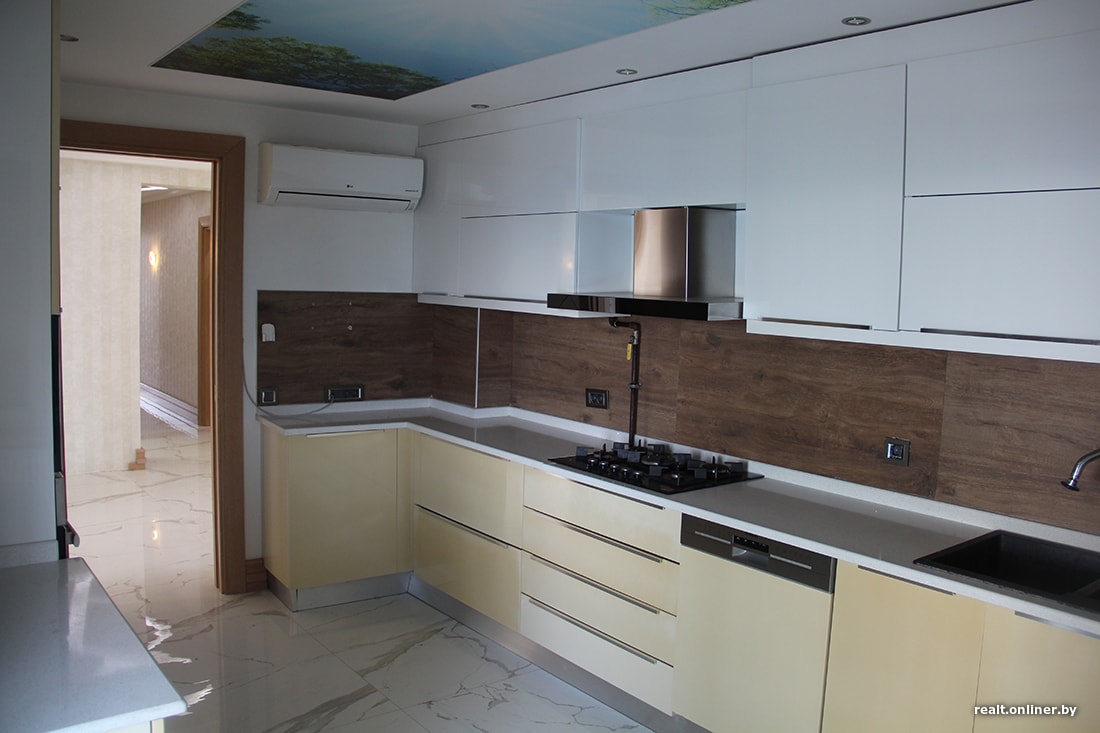 Из типичных особенностей всех квартир — на пол укладывают ламинат в жилых комнатах, плитку — на кухне и в санузлах. Стены чаще всего — под покраску. Натяжные потолки устанавливают редко, намного чаще используют подвесные (гипсокартон). Обязательно в каждой квартире предусмотрен кондиционер.