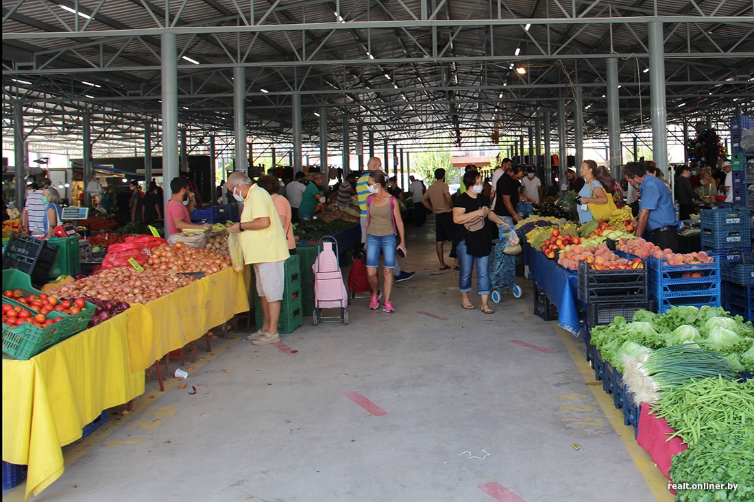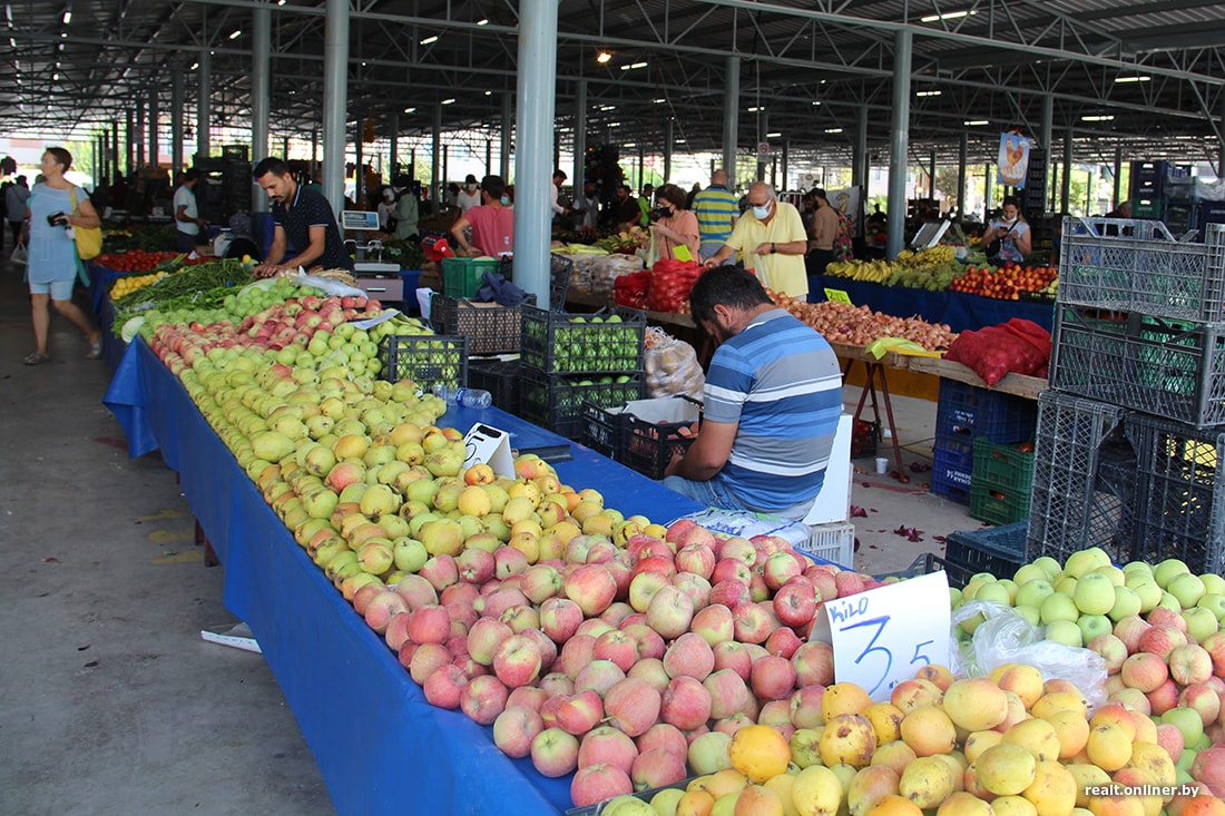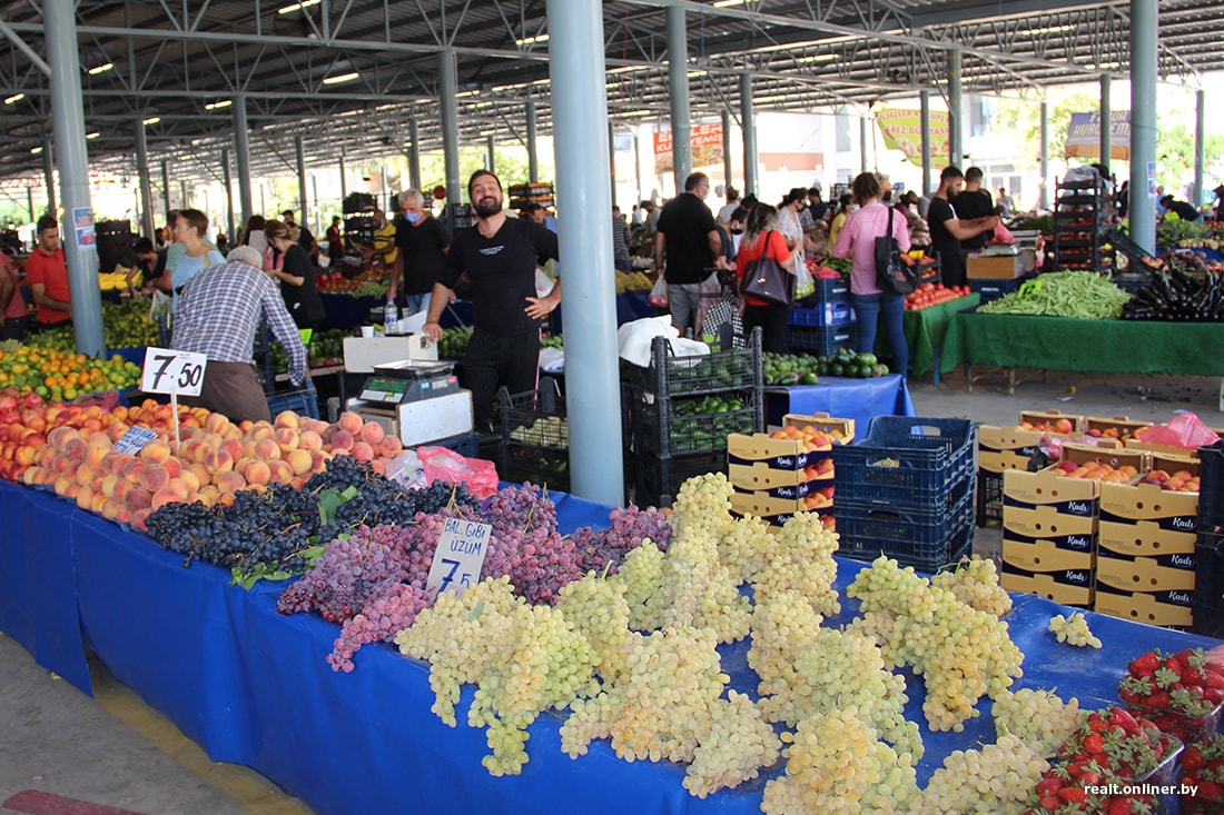 Лара считается не самым дешевым, зато спокойным местом. Побережье Средиземноморья усеяно отелями, гуляют туристы. Потому и ценники в магазинах слегка завышены. Более экономные жители ходят на традиционный рынок — он работает каждую среду. Стоимость продуктов — на фото. Переведем их сразу в белорусские рубли (по курсу на день публикации): персики и виноград — 1,9 рубля за кило, картофель — 0,8, перец — от 2,5 до 3,3, мандарины — 1,2, помидоры — 1,8, яблоки — от 0,9 до 1,3 рубля.