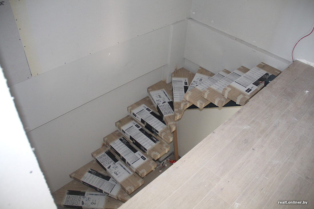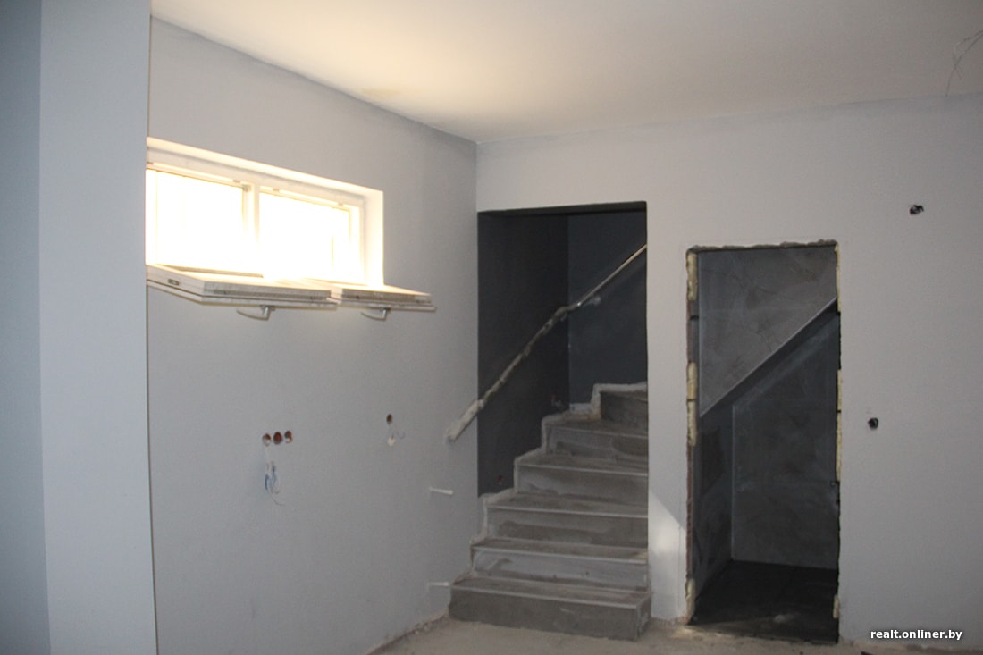 Было озвучено, что здесь две спальни, однако на этаже мы обнаружили только одну комнату помимо гостиной. Как оказалось, вторая спальня спрятана в подвальном помещении. К ней ведет лестница прямо у входной двери.