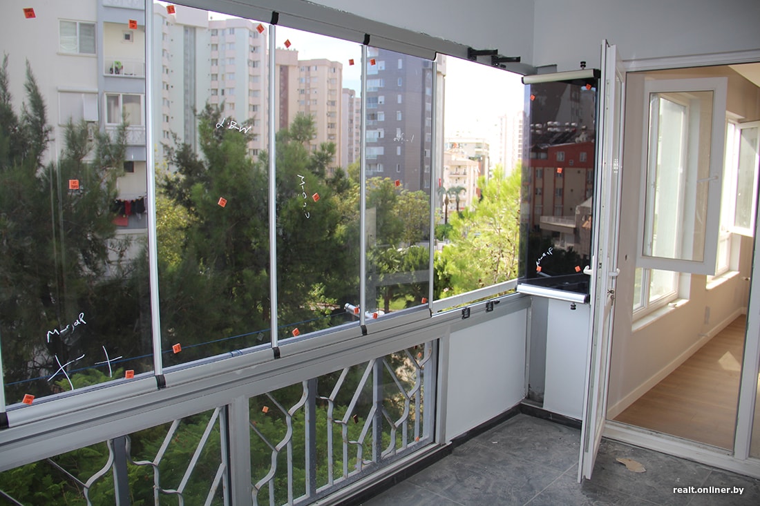 Но главная красота, безусловно, кроется за внешними жалюзи. Из большинства окон и со всей лоджии открывается великолепный вид на залив. Все побережье анталийского залива Средиземного моря как на ладони.
