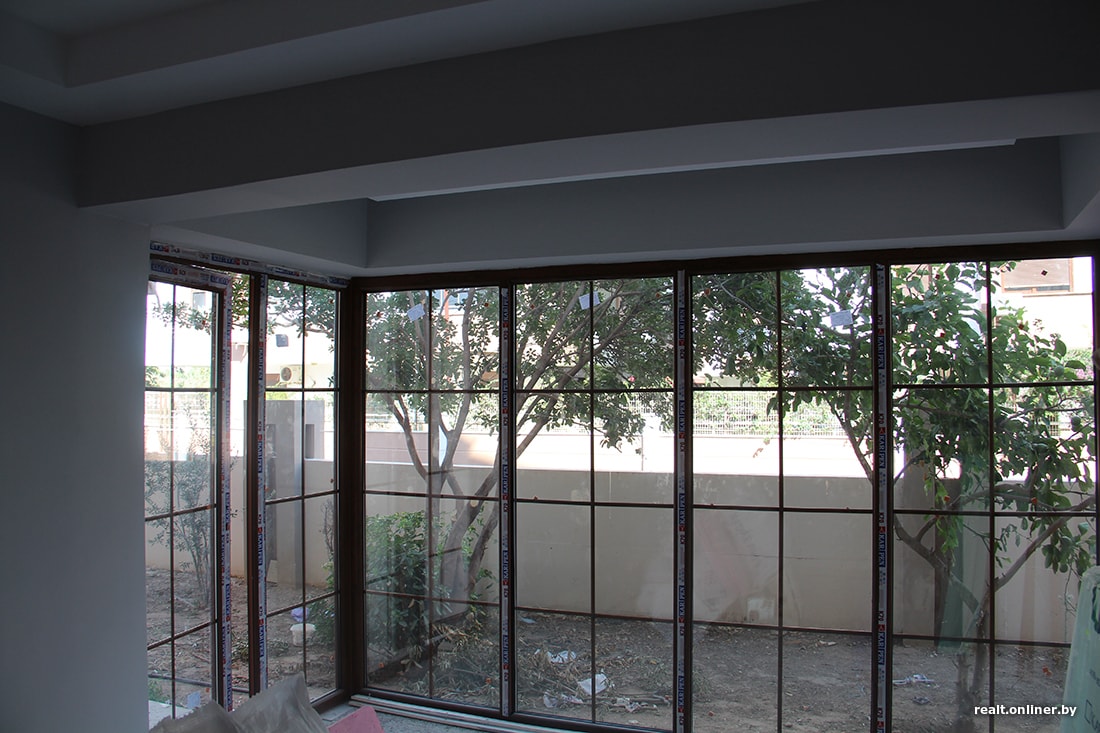 Квартиру еще только готовят к продаже. До конца года должны установить стеклянные стены, закончить внутреннюю отделку, высадить деревья и кусты.
