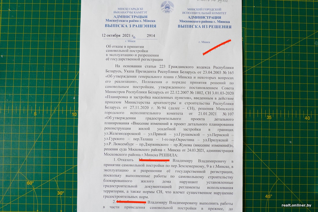 — Мы сюда переехали в 1996 году. Здесь был одноэтажный дом с разрушенной верандой и вырытым котлованом. Нам с мужем не хватало денег, чтобы выкупить всю постройку, так что сделали это пополам с друзьями — на две семьи. Свои части мы достраивали с проектами, не просто так. И с конца 1990-х пытаемся узаконить эти изменения. В этом году наконец выиграли суд и апелляцию. Суд стал на нашу сторону, потому что мы пытались узаконить стройку еще до 2001 года, до создания Генплана. Но исполком все равно отказывает, — говорит Галия.