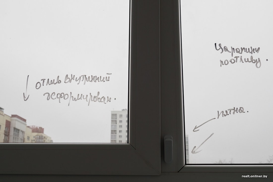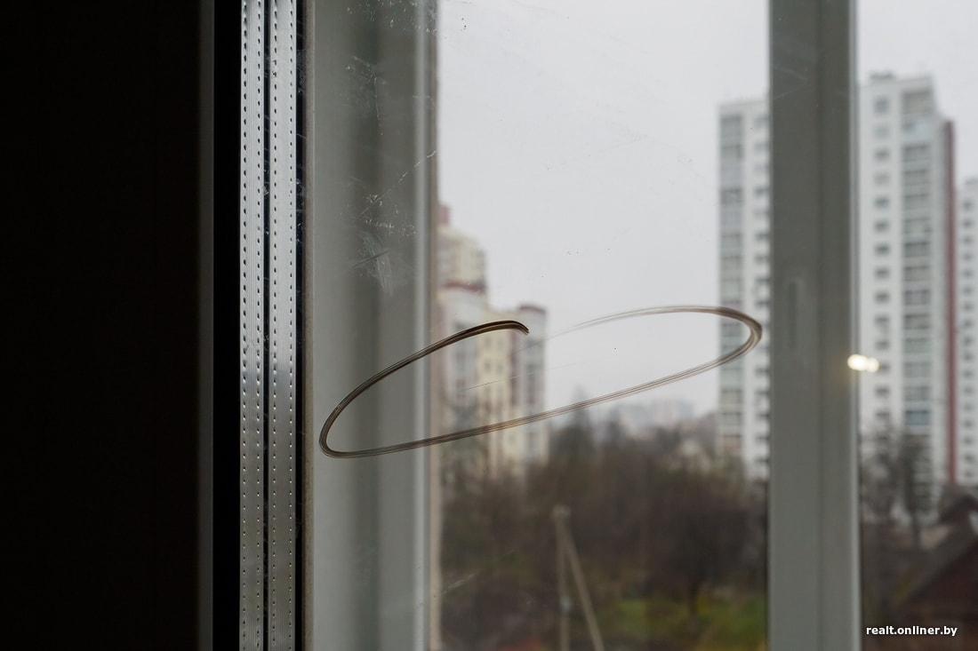 А вот окна, к сожалению, строители не уберегли. Отринем мелочи вроде защитных элементов, которые забыли снять, а также «зажеванных» резинок, и посмотрим на царапины. Их довольно много. Смотришь, и больно становится. Три стеклопакета точно под замену. Створкам тоже нужна регулировка: в гостиной прилично поддувает, а ведь холода как таковые еще не наступили.