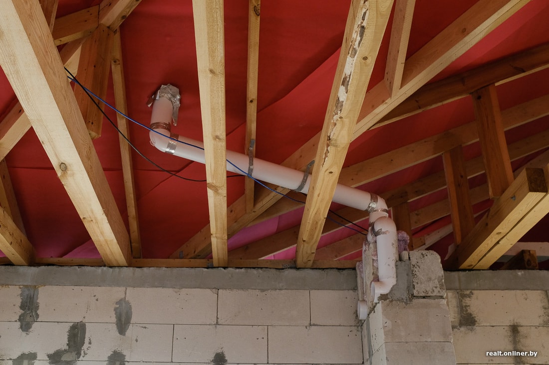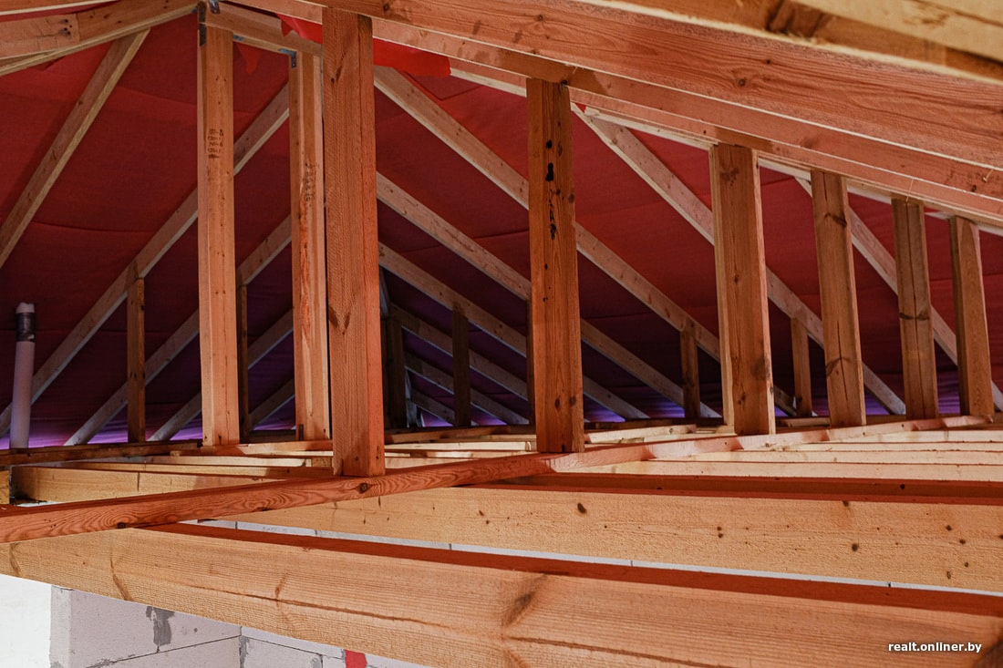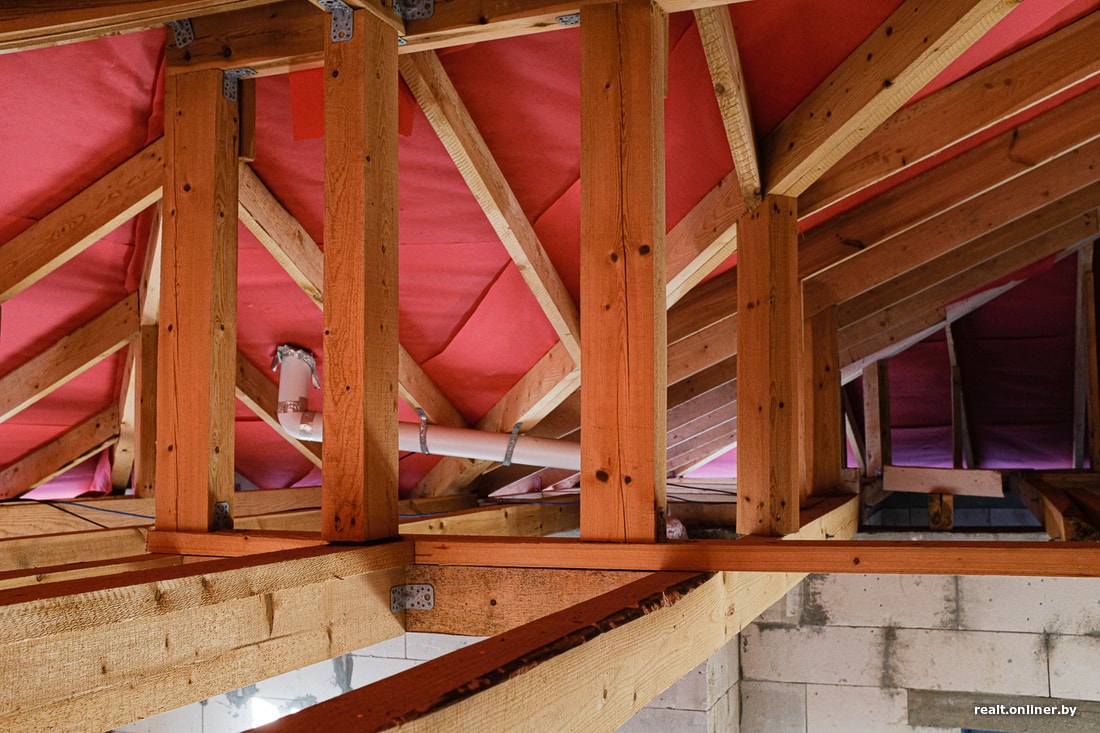 — Больше всего претензий к кровле и межэтажному перекрытию. Более 70% деревянных конструкций не обработаны огнебиозащитным средством (могут просто сгнить, а могут стать пристанищем для жуков). Его наносили в минусовую температуру, поэтому оно не впиталось. Расстояние между балками в нескольких местах превышает 120 см, хотя по расчетам не должно быть больше 60 см. Вдоль перегородок кое-где перекладины и вовсе отсутствуют, так что закрепить черновой потолок невозможно. По всему периметру нет опорных стоек, а между мауэрлатом и стенами зазоры от 7 до 25 мм…