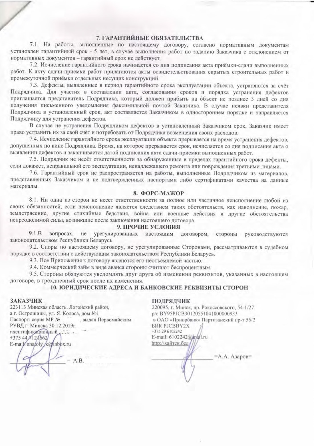 Может, дело и правда в банальной невнимательности: в Беларуси в качестве индивидуальных предпринимателей зарегистрированы аж три Азарова Александра Анатольевича. Вот только юридический адрес, указанный в договоре подряда, совпал лишь с одним из них: этот самый ИП находится в процессе ликвидации с 2018 года.