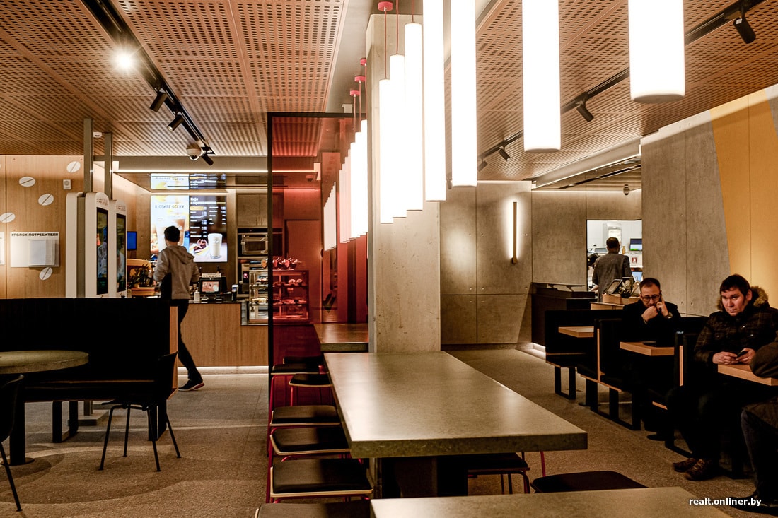 Также в зале есть «МакКафе», киоски самообслуживания, сервис обслуживания за столами, доставка через 4 операторов. Внимательные посетители заметят, что изменилась и форма у сотрудников компании.