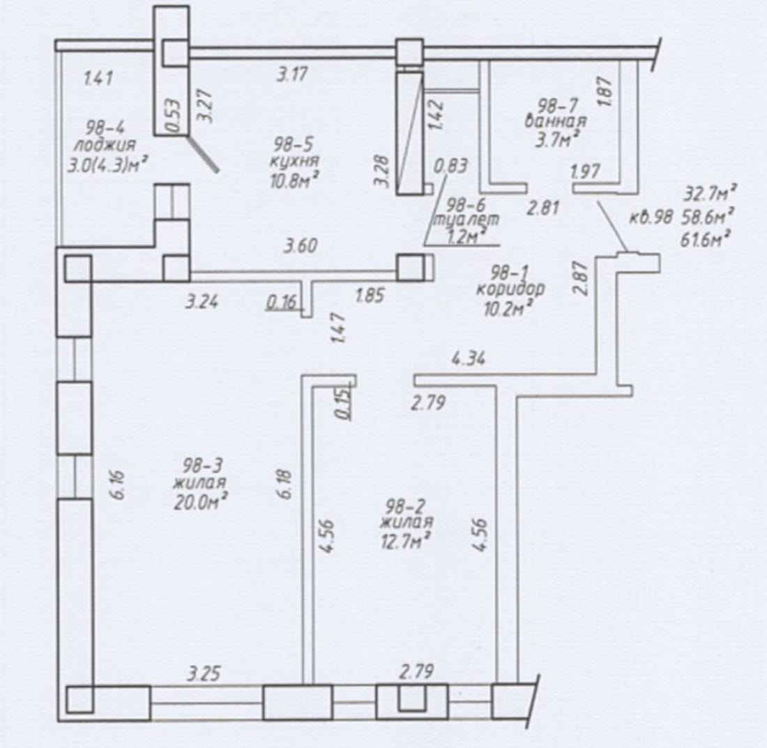 • двушка на 6-м этаже (общая площадь — 58,1, жилая — 32,6 «квадрата»). Цена — 155 тысяч рублей;